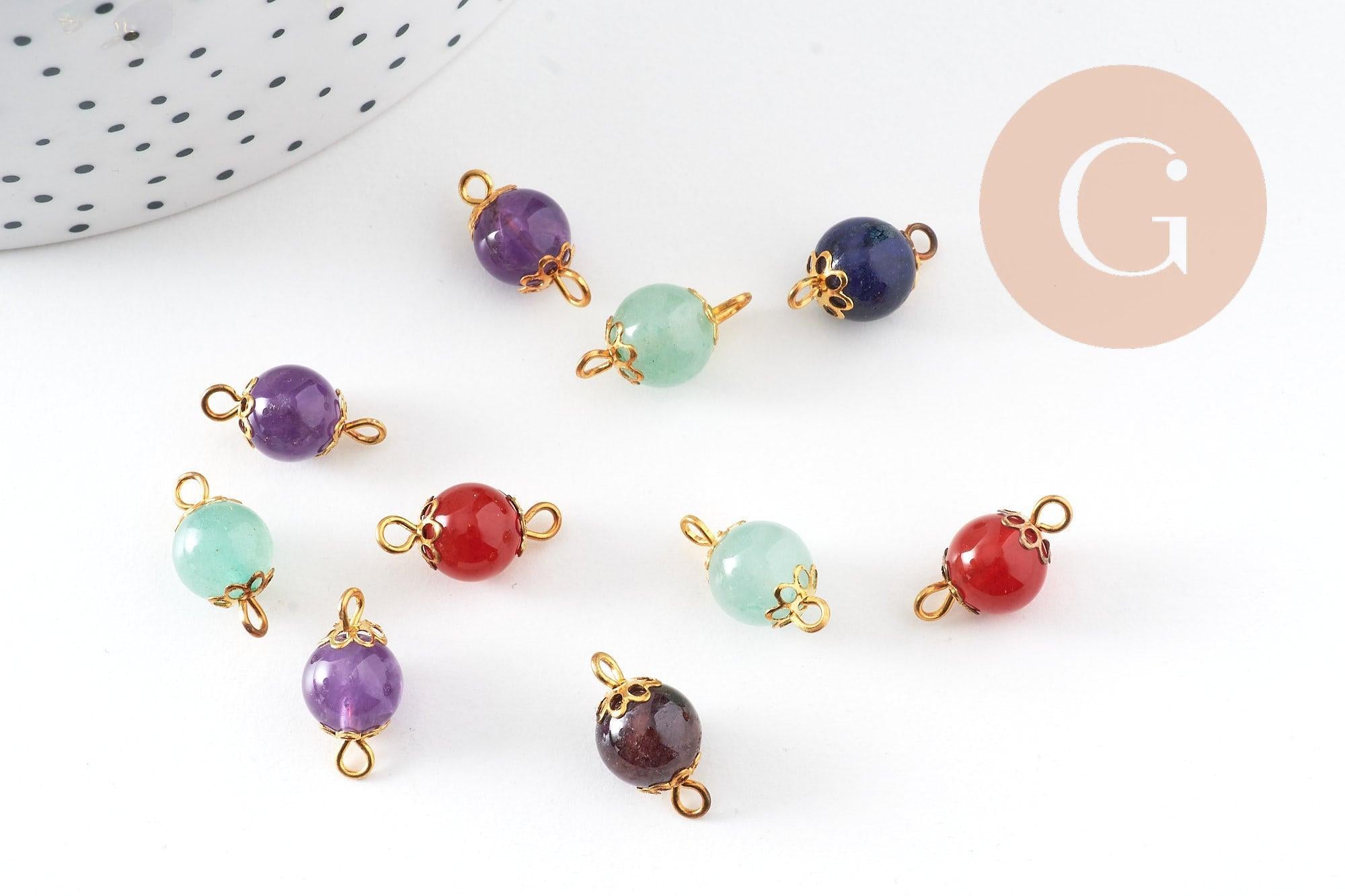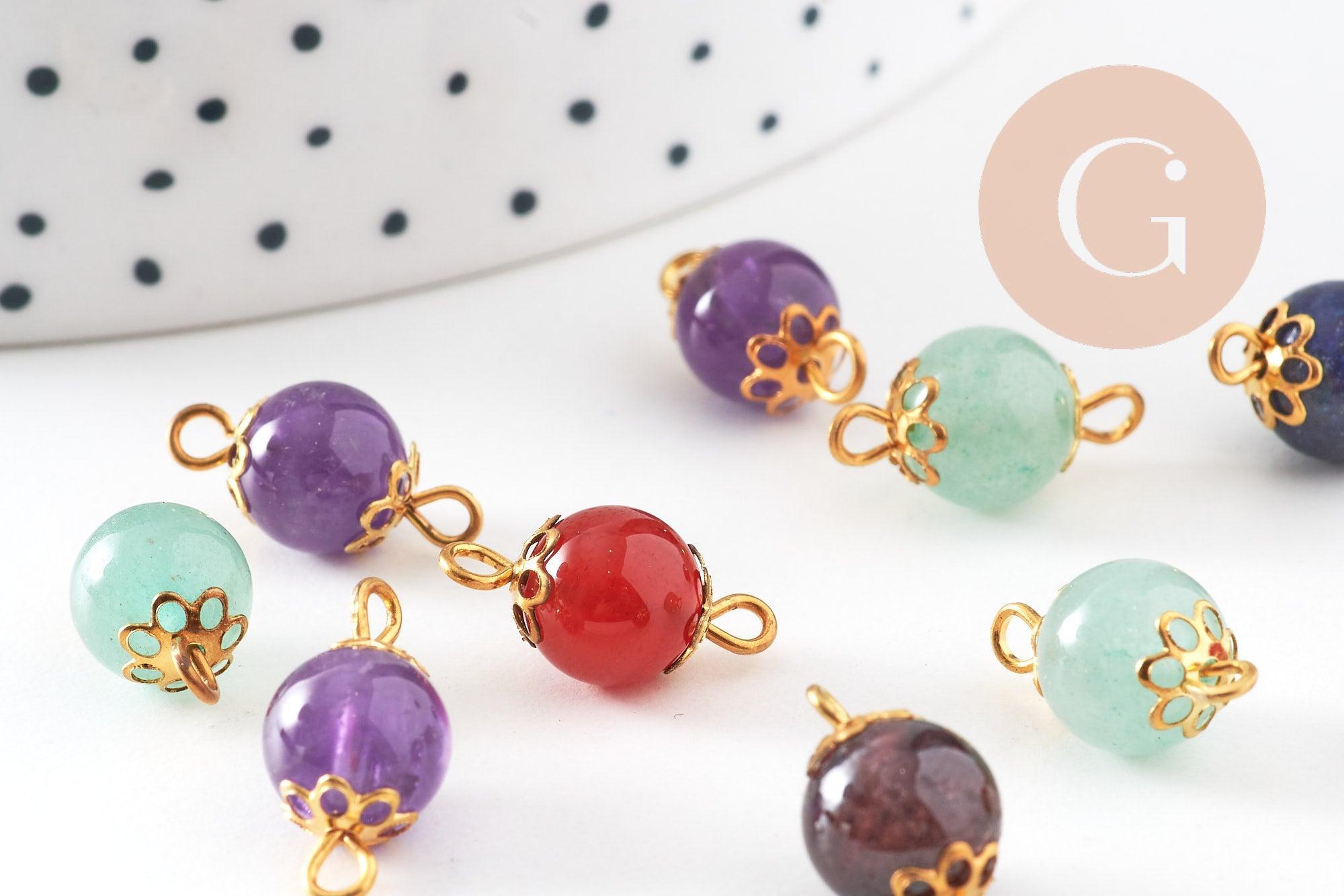Enamórate de estos colgantes redondos con conector de piedra y soporte de zamac dorado.