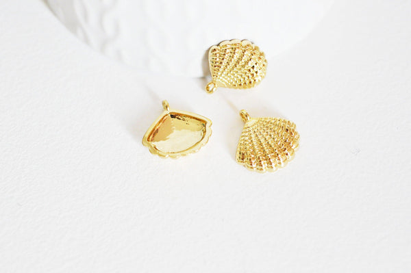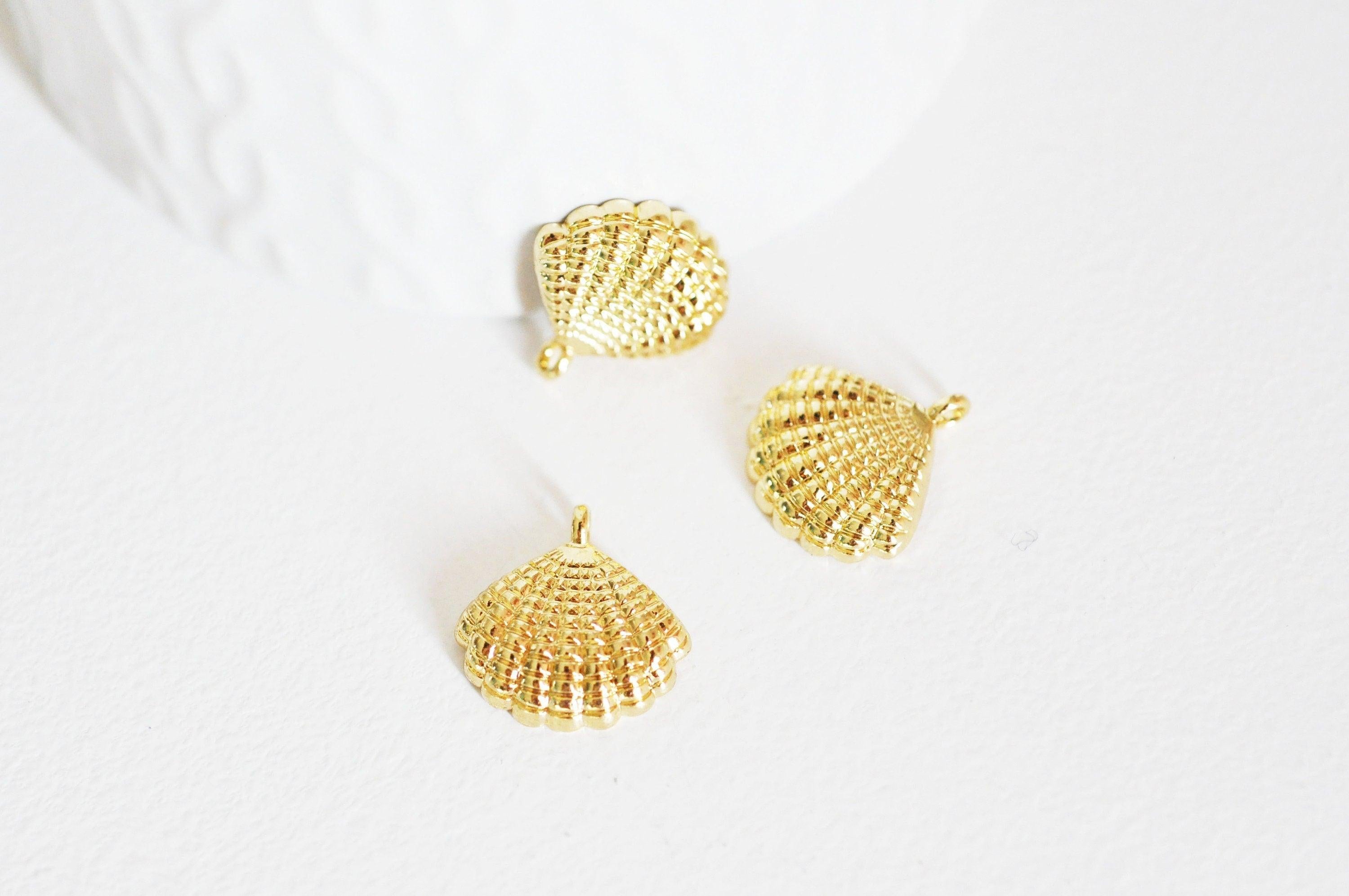2 colgantes de concha en metal bañado en oro de 14K.