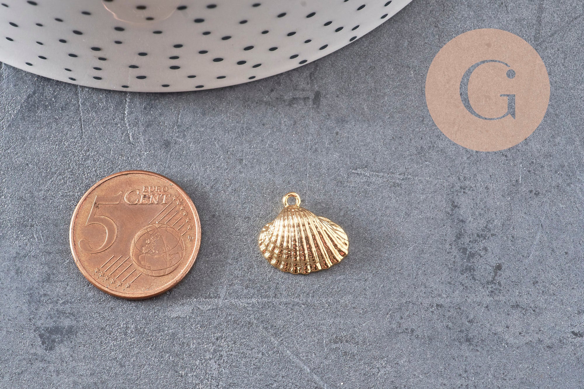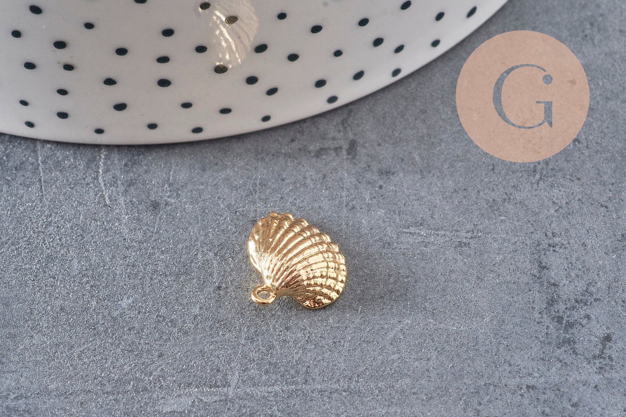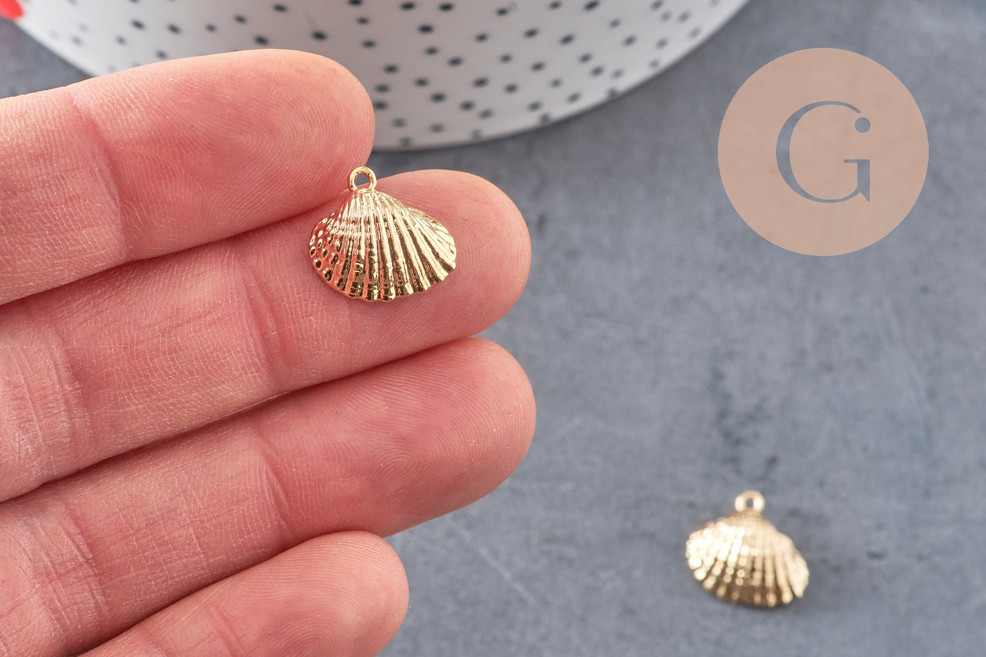 Colgante de concha de oro de 18K, concha de oro, colgante de playa, colgante de oro, concha de oro, creación de joyas, Lote de 2, 14,5 mm - G05