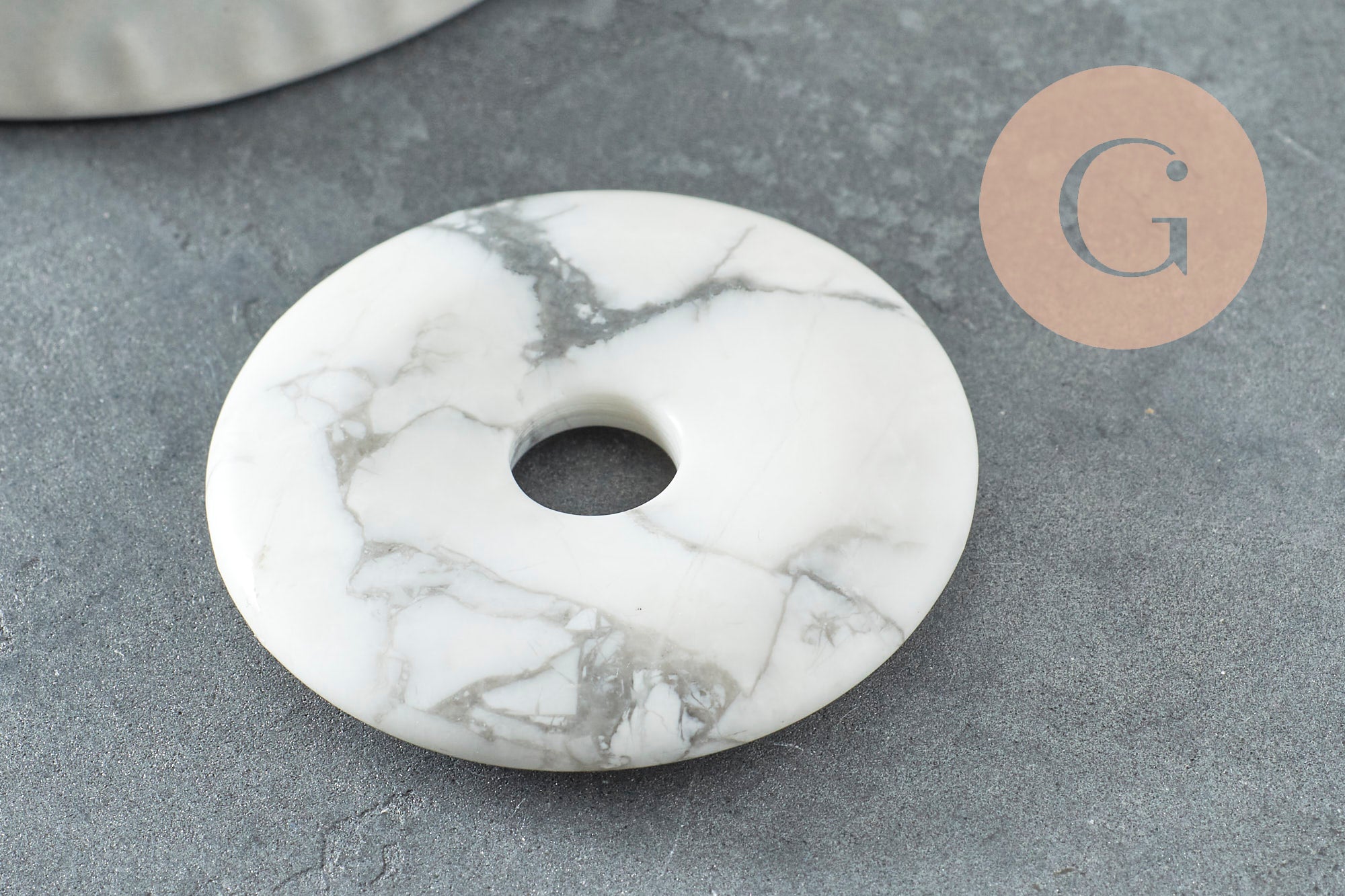 Colgante de donut de howlita blanca jaspeada, colgante de joyería de piedra, howlita natural, 39-40 mm, unidad