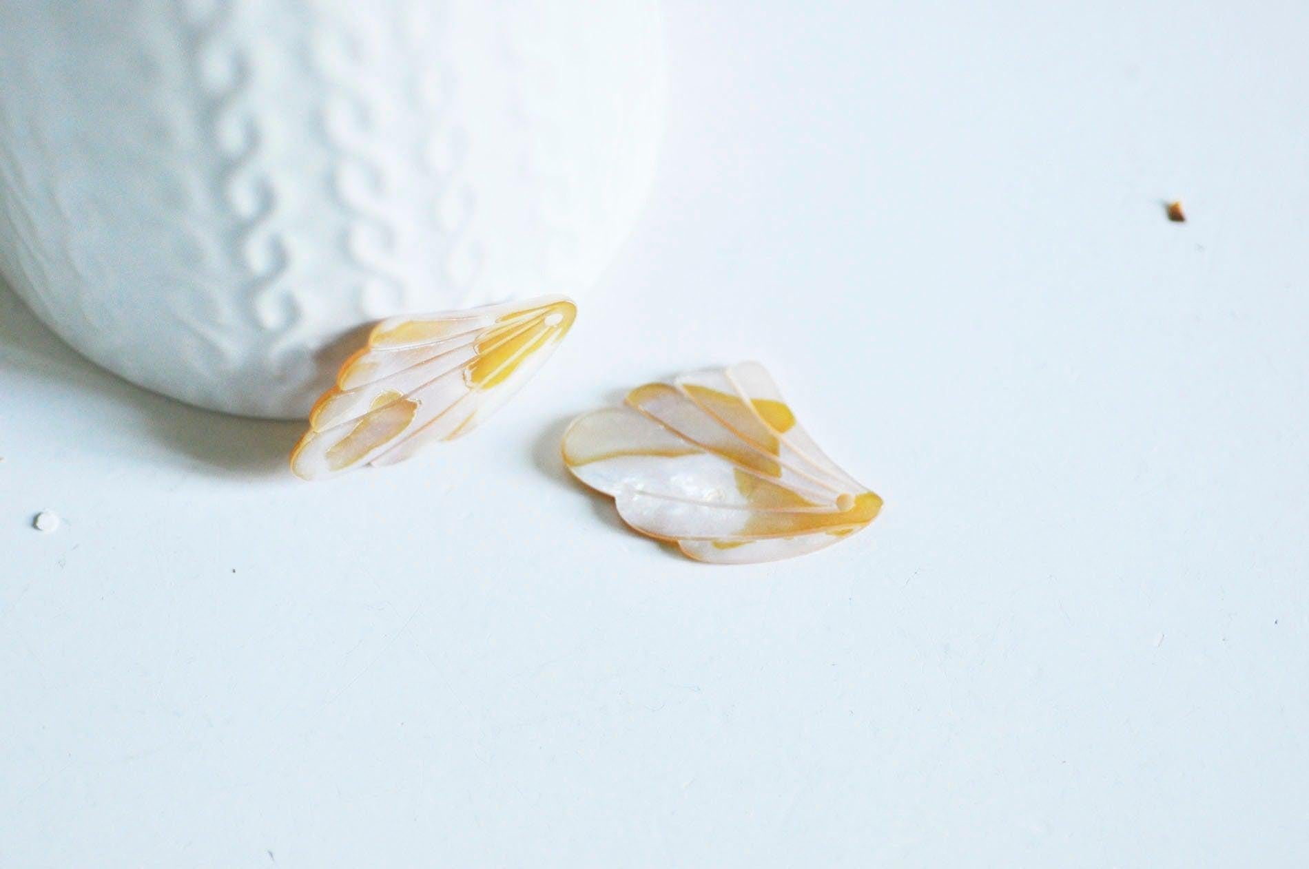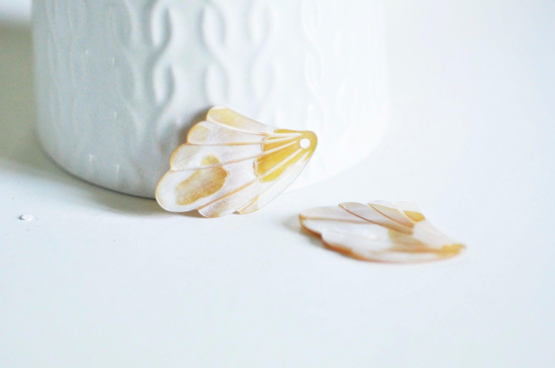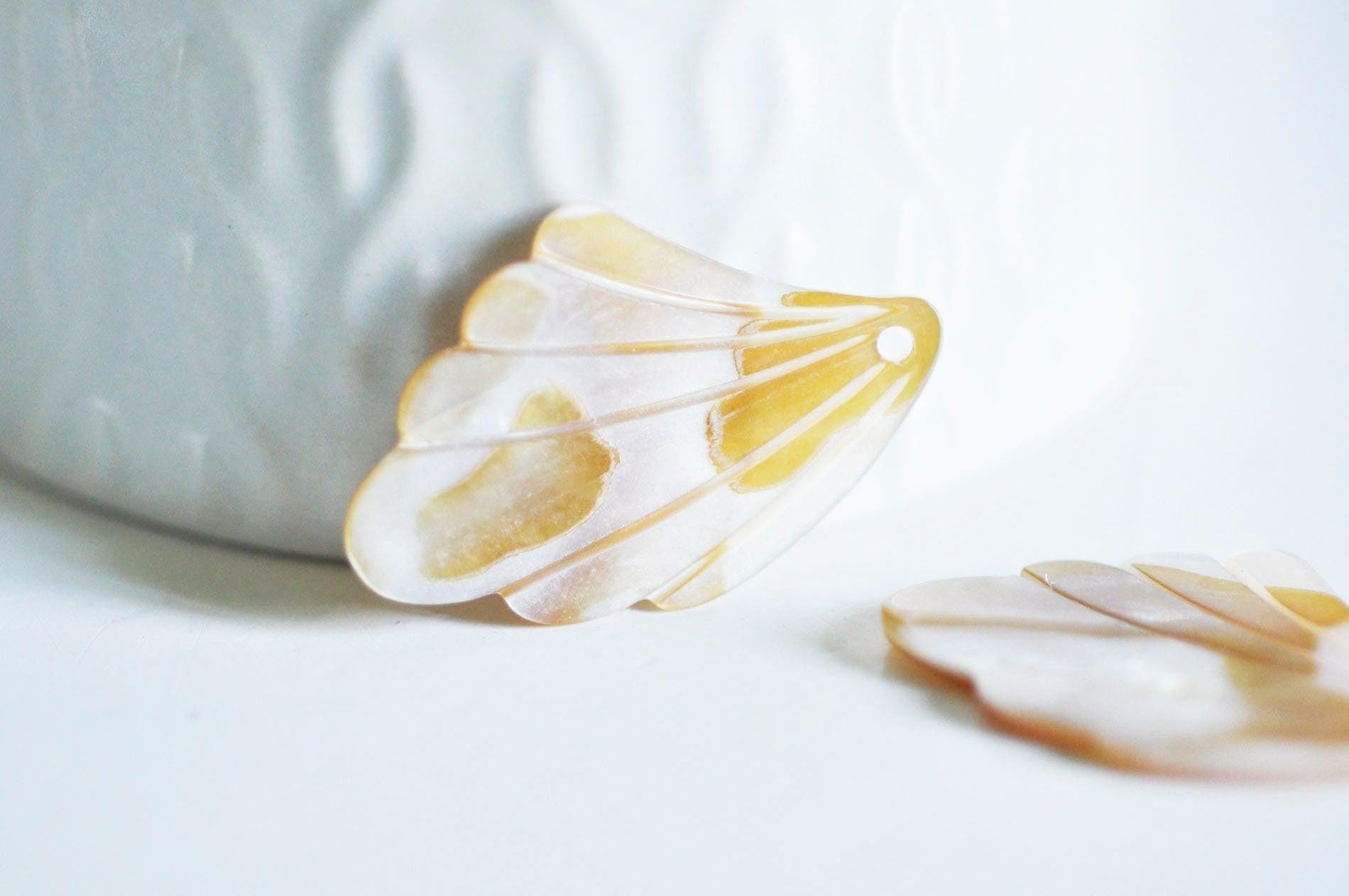 Colgante de hoja de nácar amarillo natural, perla de hoja, nácar natural, concha blanca, creación de joyería, 35 mm, x1, G0911