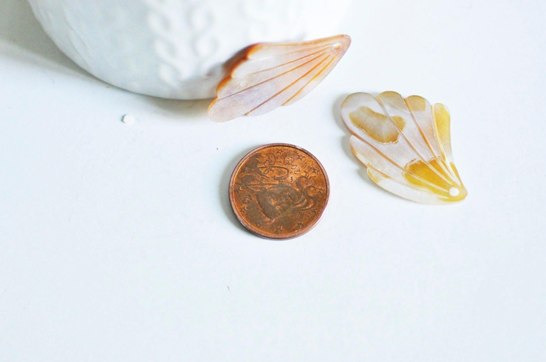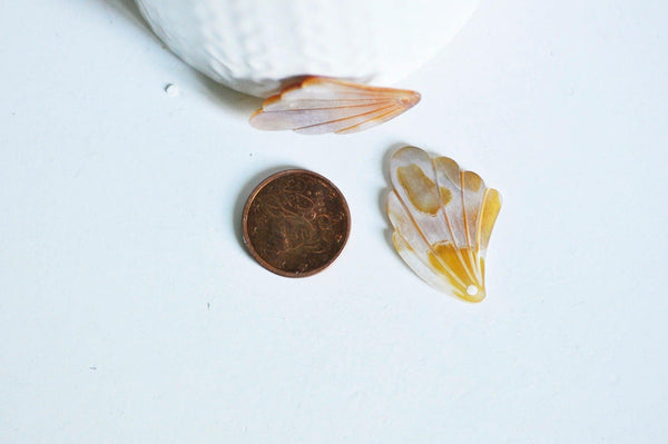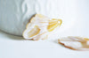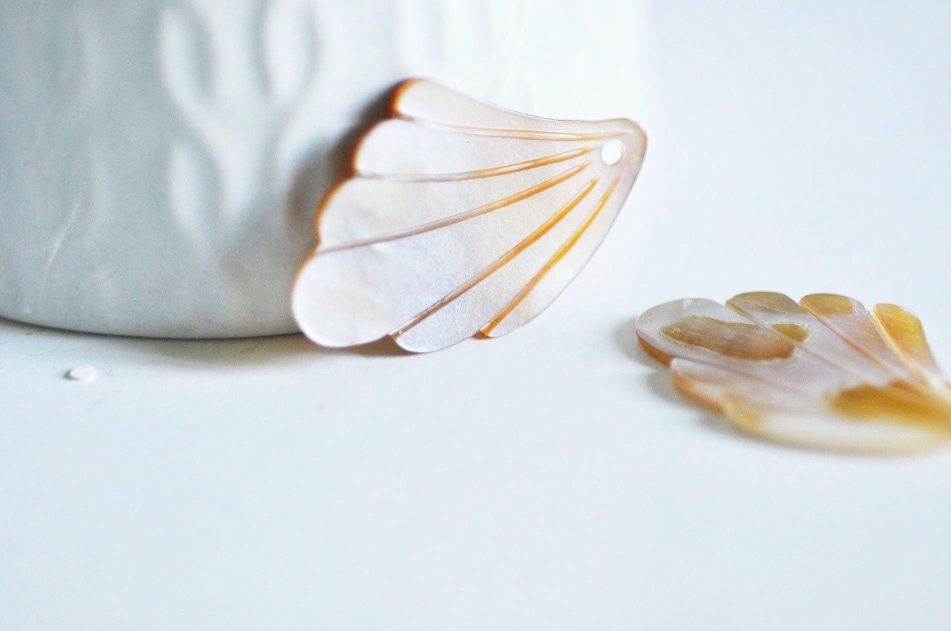 Déjate seducir por estos colgantes de hojas de nácar natural de color amarillo rosado. Un precioso producto para realizar pendientes y collares finos y elegantes.
