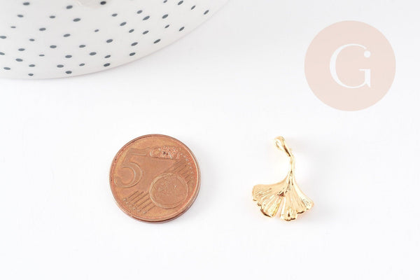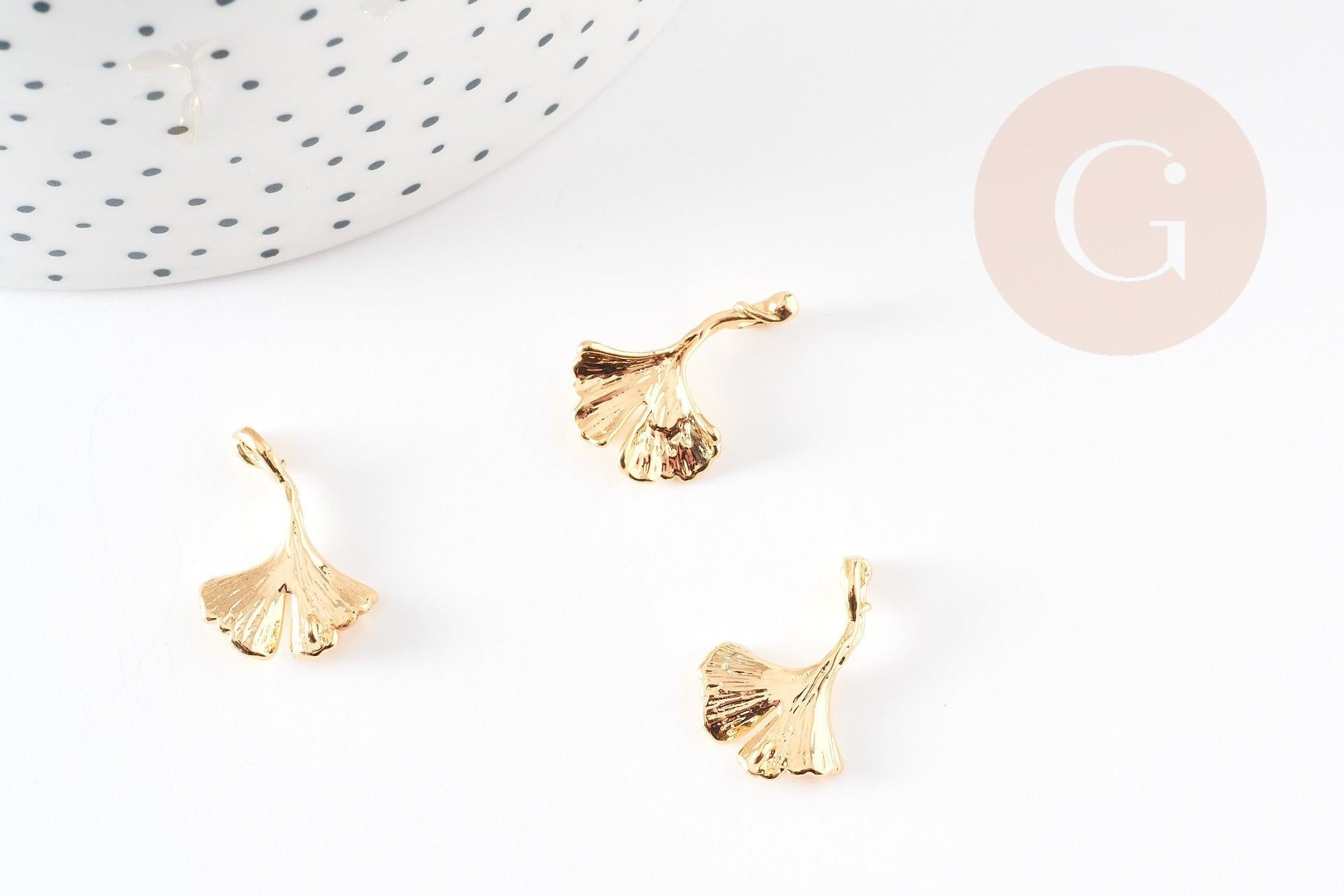 Colgante de hoja de gingko de latón bañado en oro de 18 quilates, 20 mm, dije de latón de hoja de gingko, x1 G3811