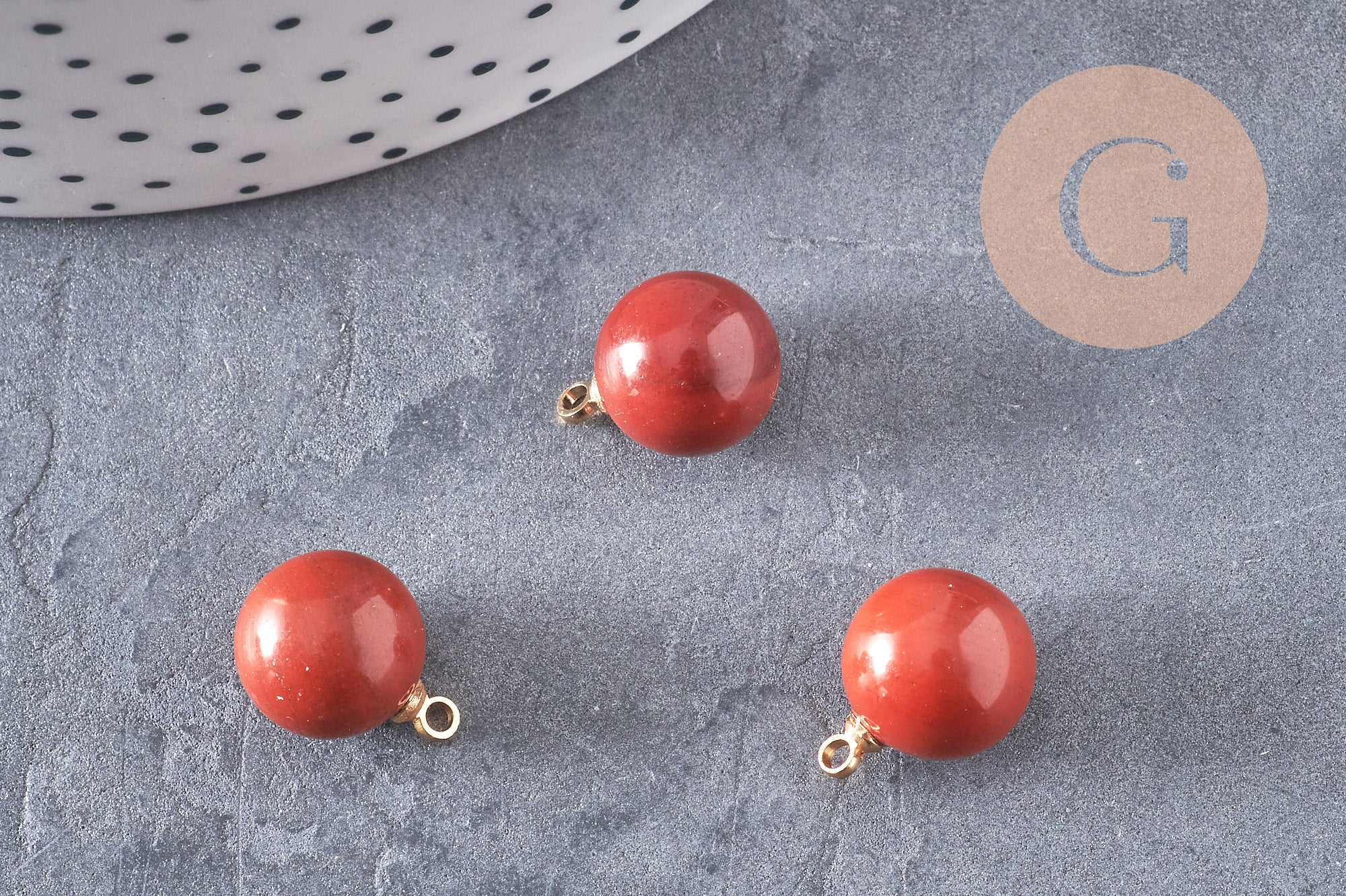 Colgante gota redonda de jaspe rojo natural, soporte dorado, creación de joyería de piedra natural, colgante de piedra natural, 14mm, x1, G4485