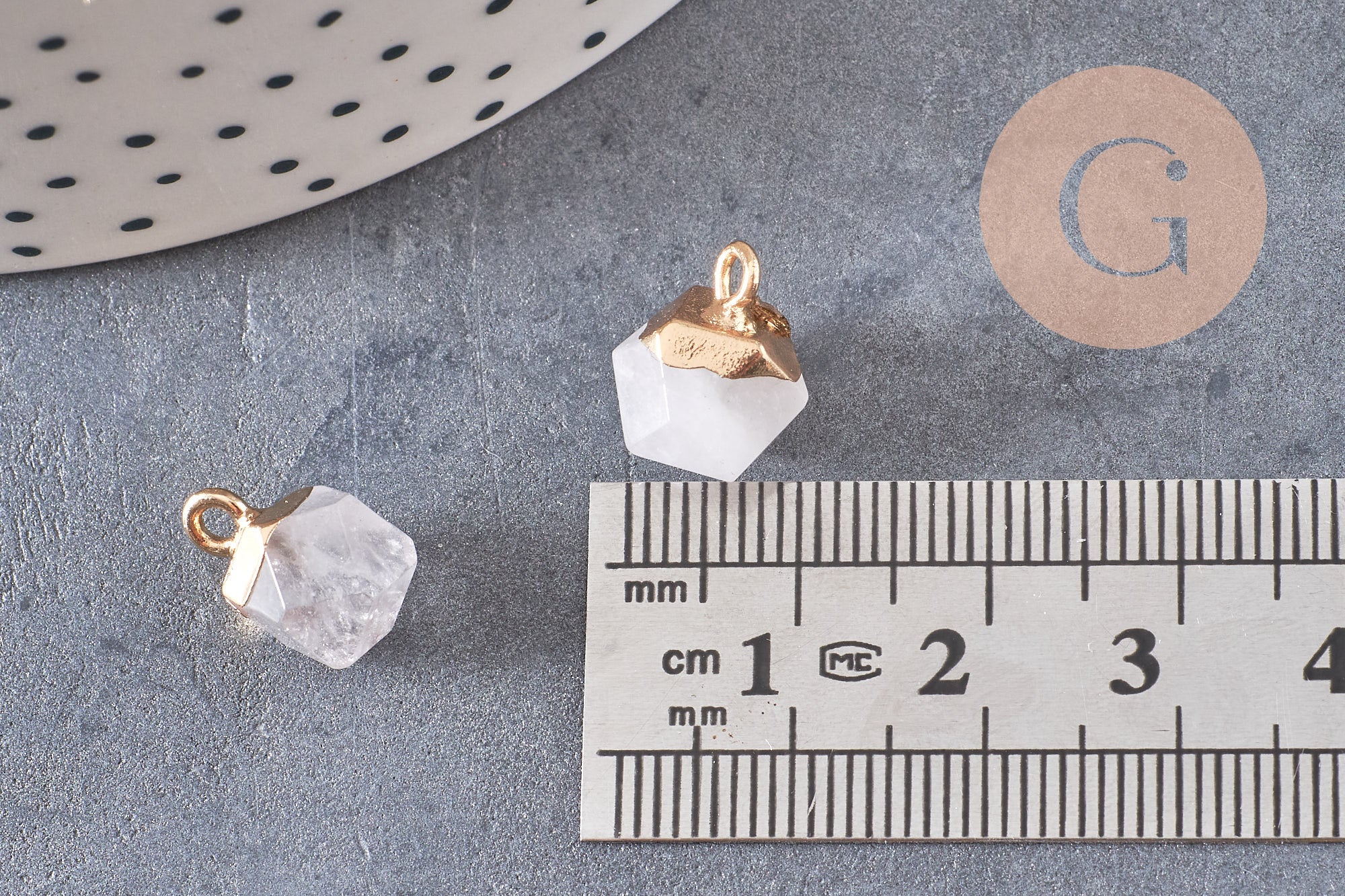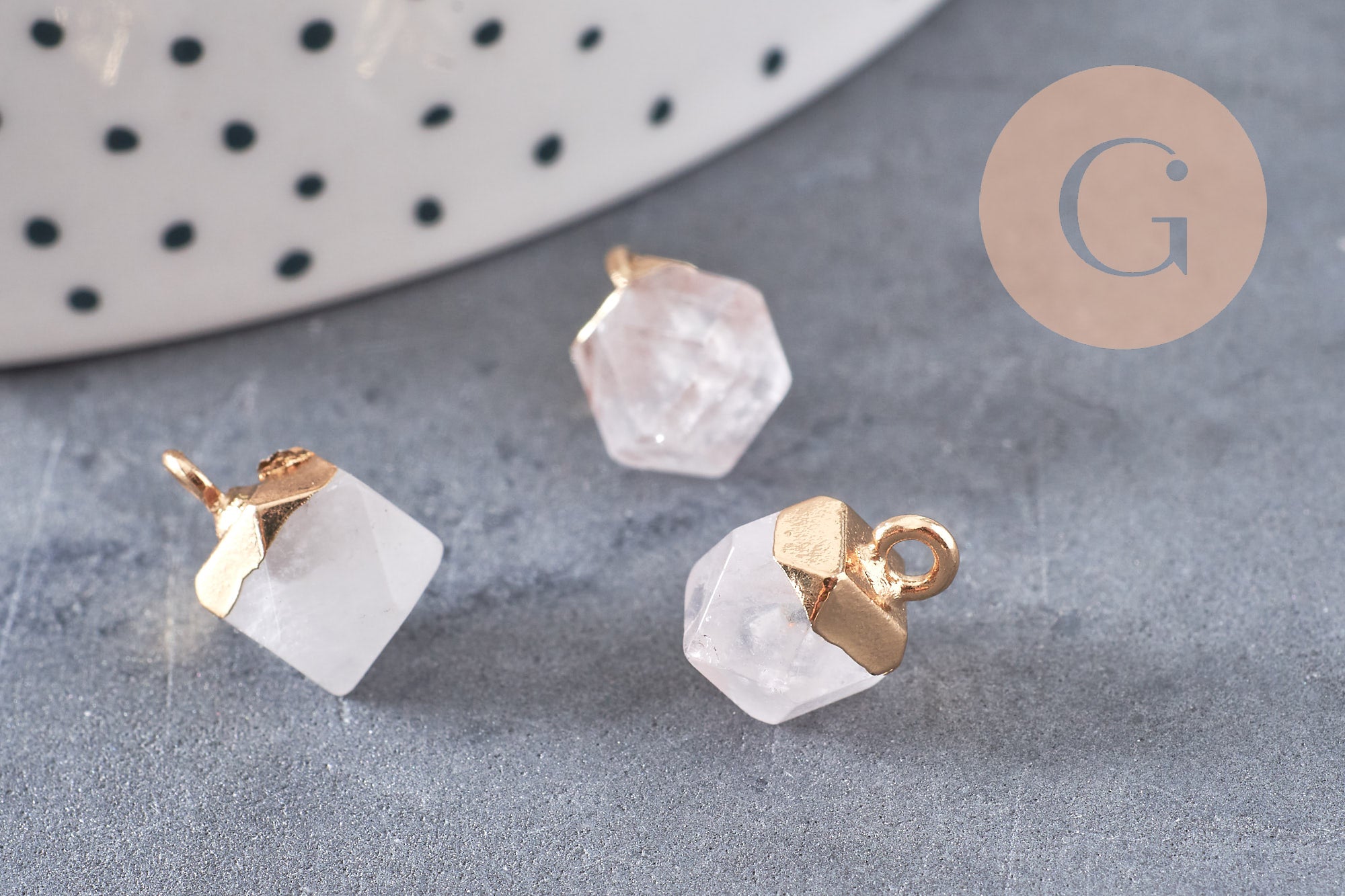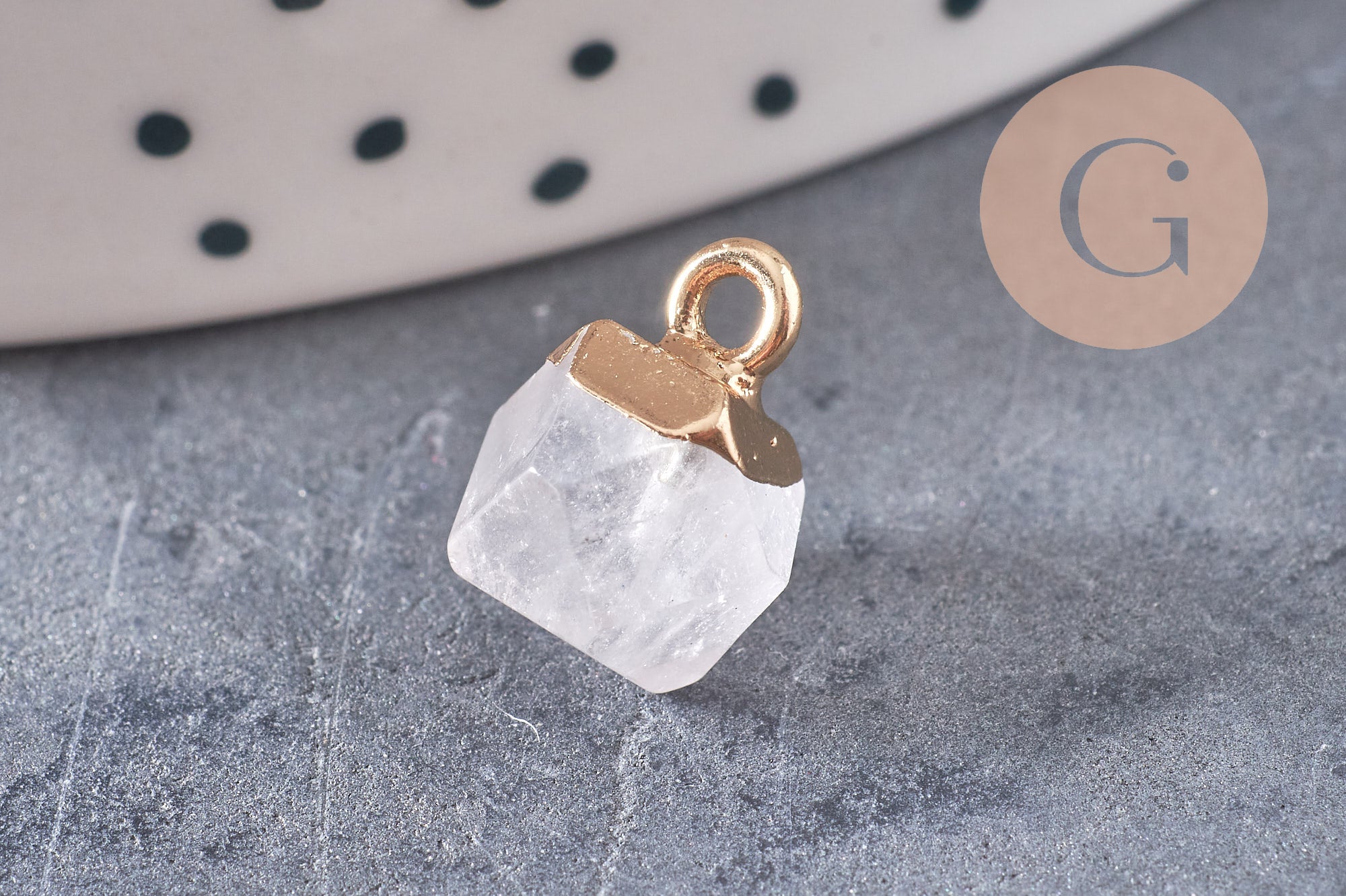 Déjate seducir por este pequeño y discreto colgante de cuarzo con su soporte de hierro dorado.