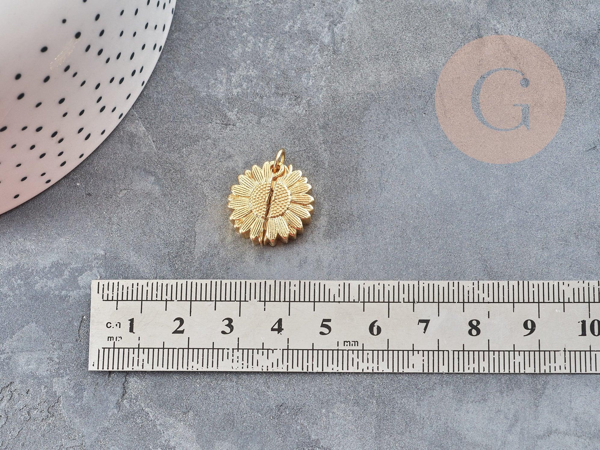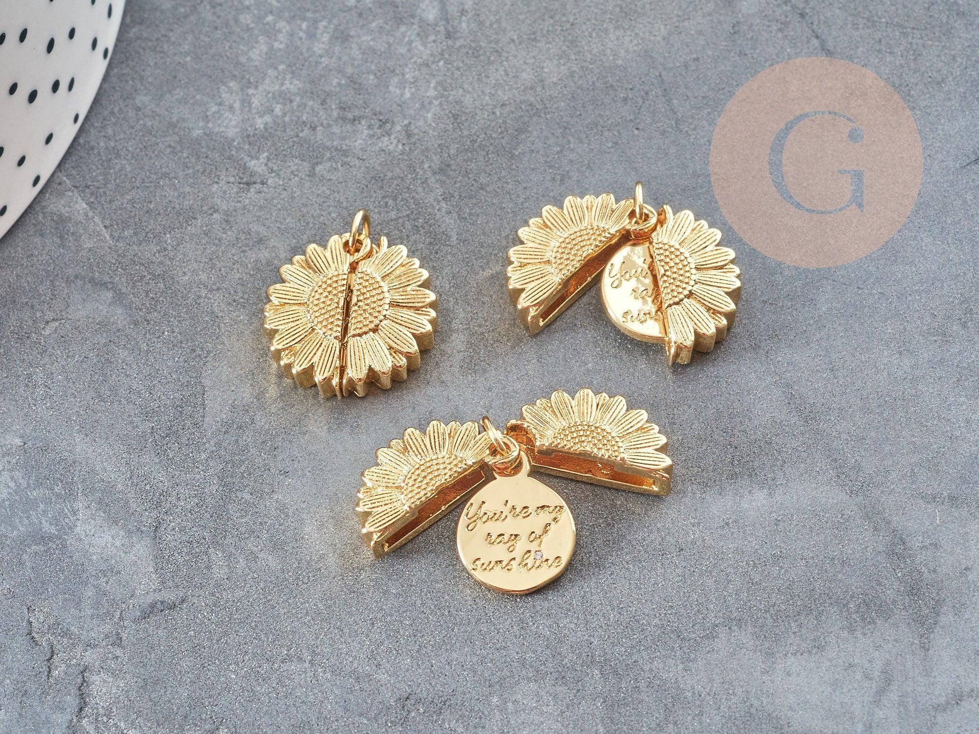 Colgante Flor de Girasol con mensaje que abre latón dorado 18mm, joyería original DIY, x1 G9055