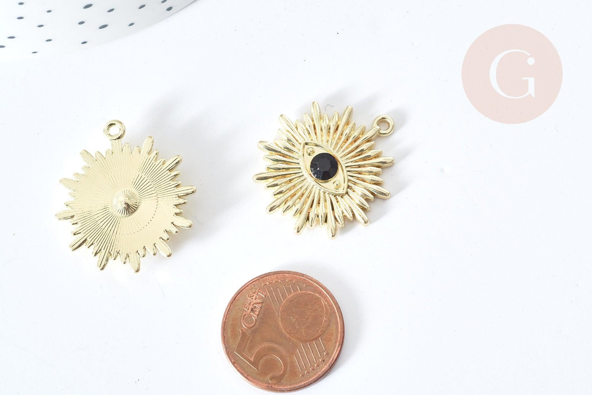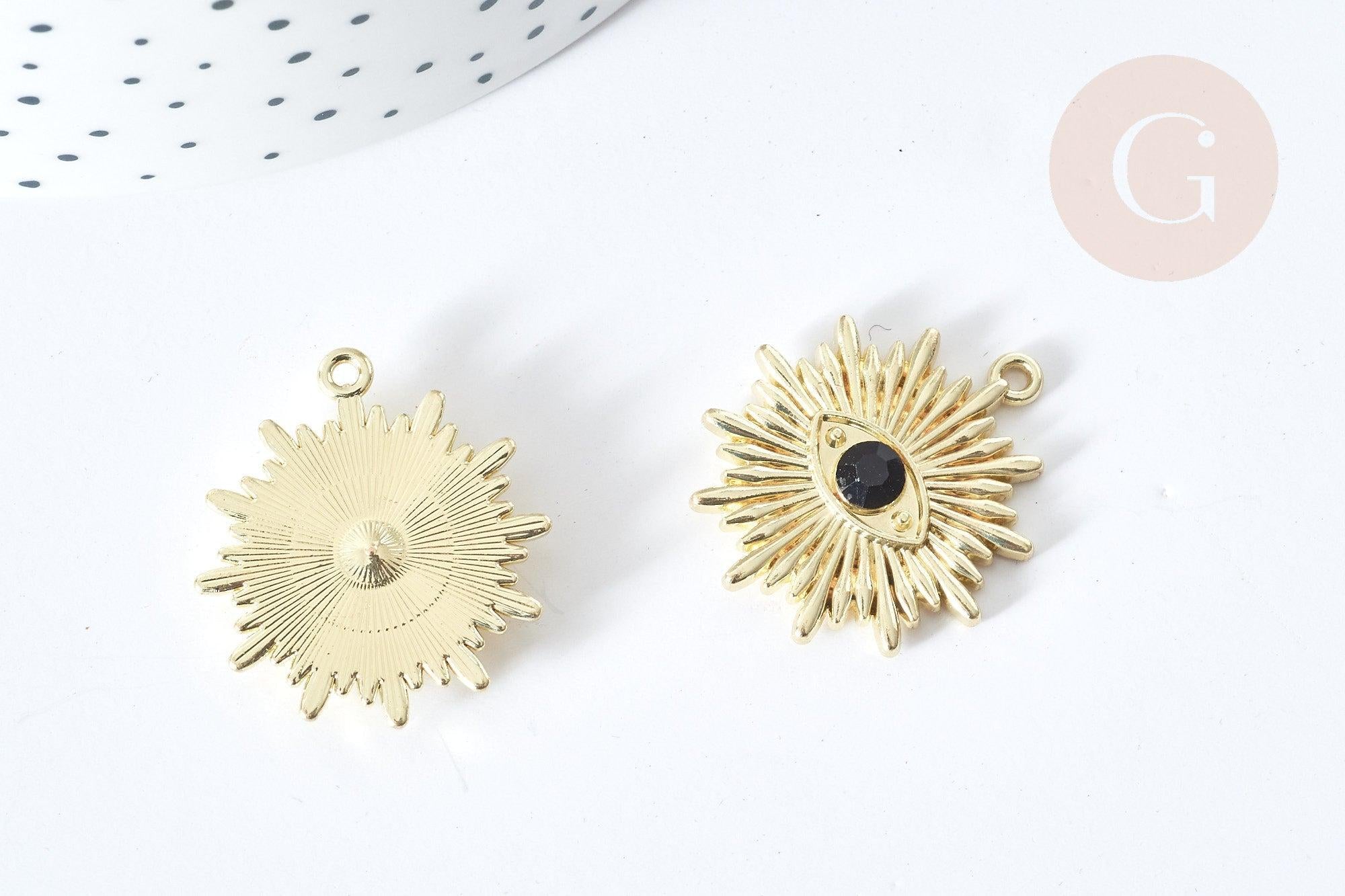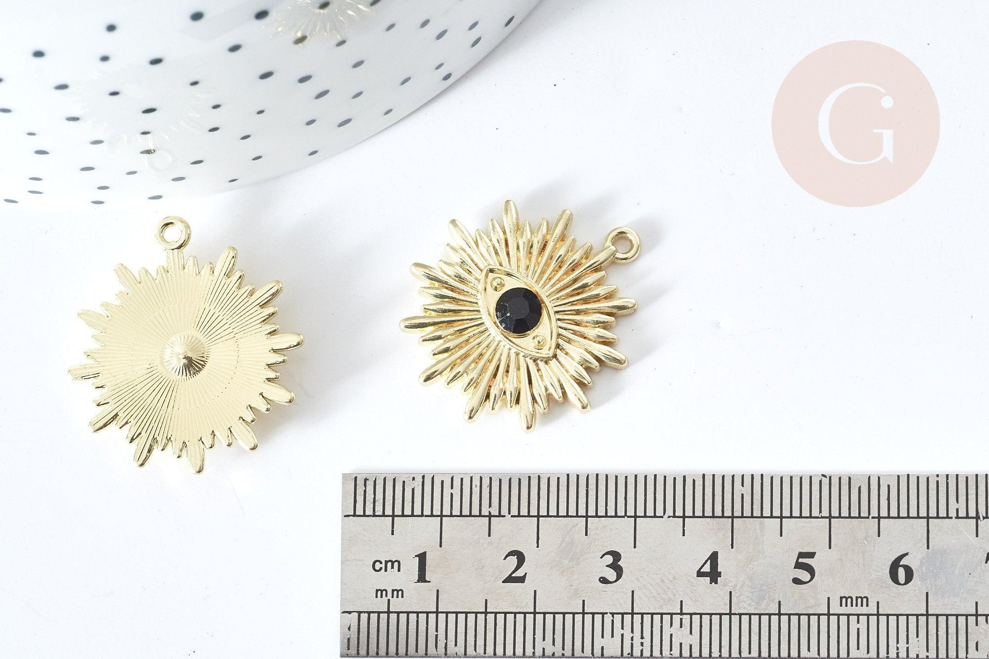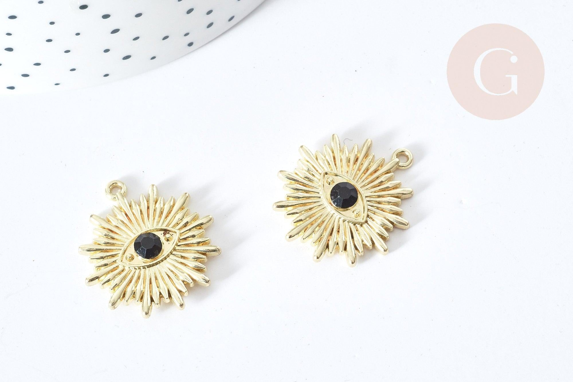 Colgante Evil Eye resina negra zamac oro 27.5mm, Colgante zamac oro para la creación de joyas de la suerte, x1 G8087