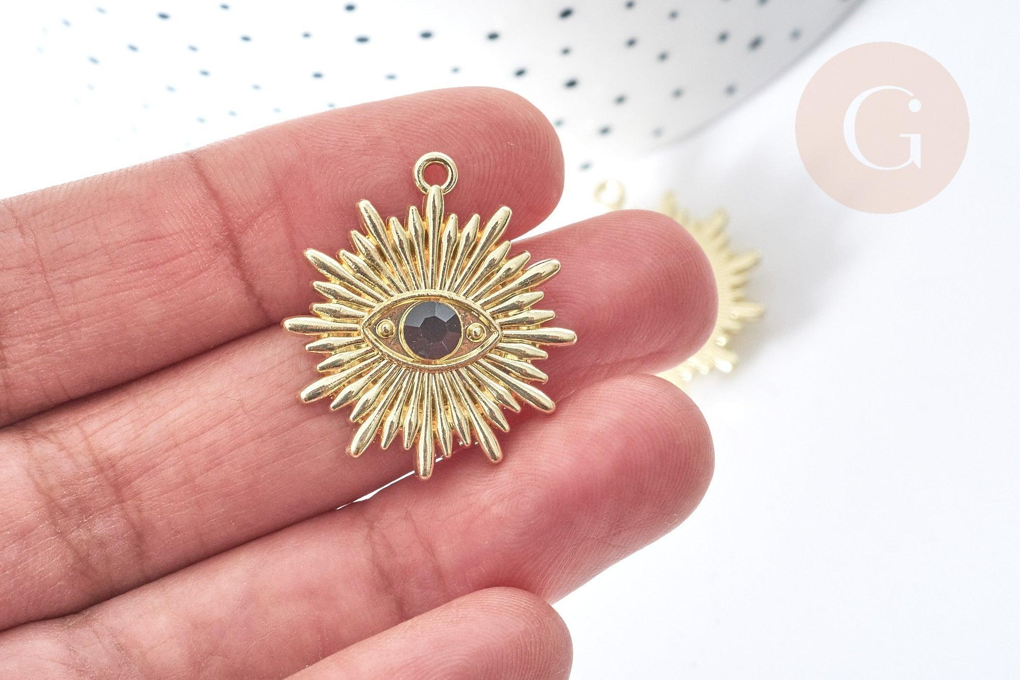 Adopta este encantador colgante de mal de ojo para usarlo alrededor de tu cuello o en tus orejas. Ideal para diseñar bisutería DIY .