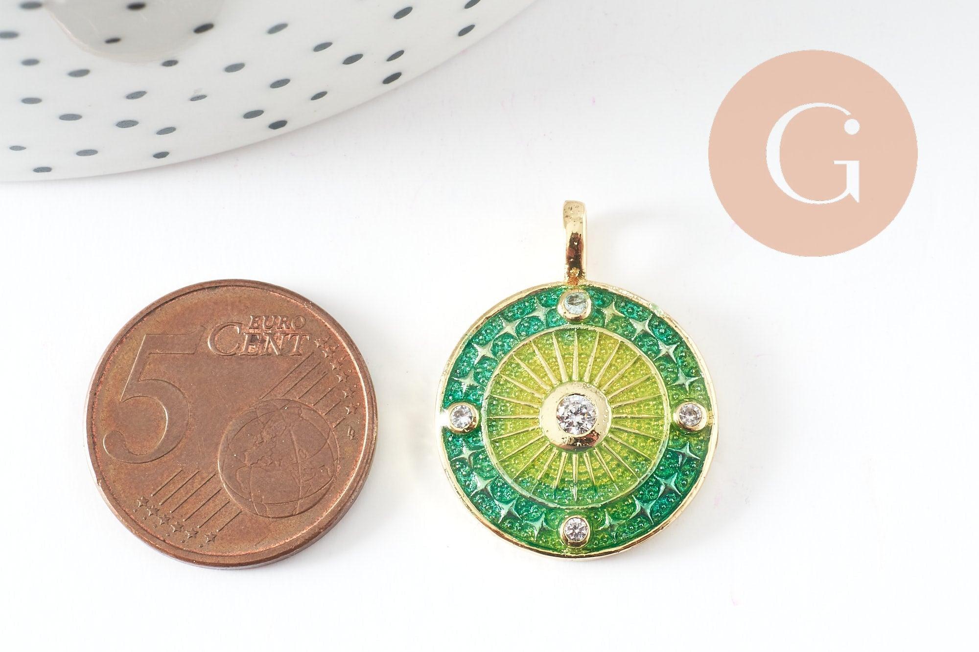 Descubre el colgante medalla redonda en forma de sol y estrella en latón bañado en oro de 18 quilates , decorado con circonitas.
