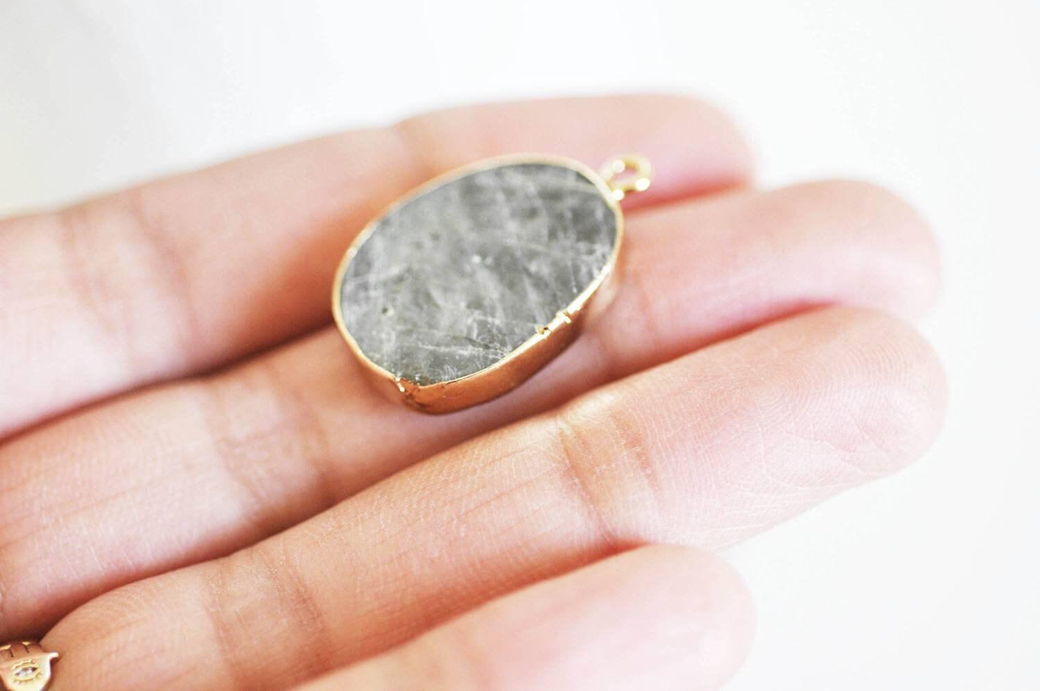 Colgante ovalado de labradorita natural EP de 28 mm, x1 (G1136)