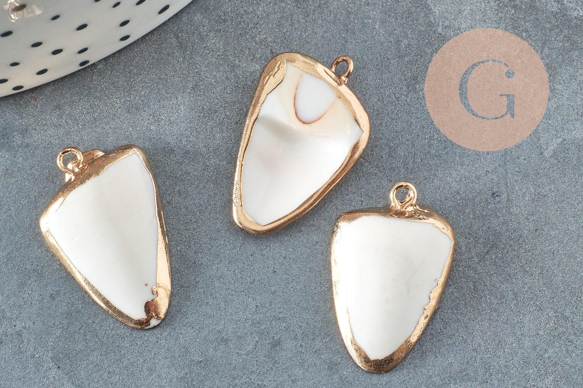 Déjese seducir por este colgante de concha blanca adornado con un engaste de latón dorado para crear una bisutería muy actual con un estilo bohemio chic.