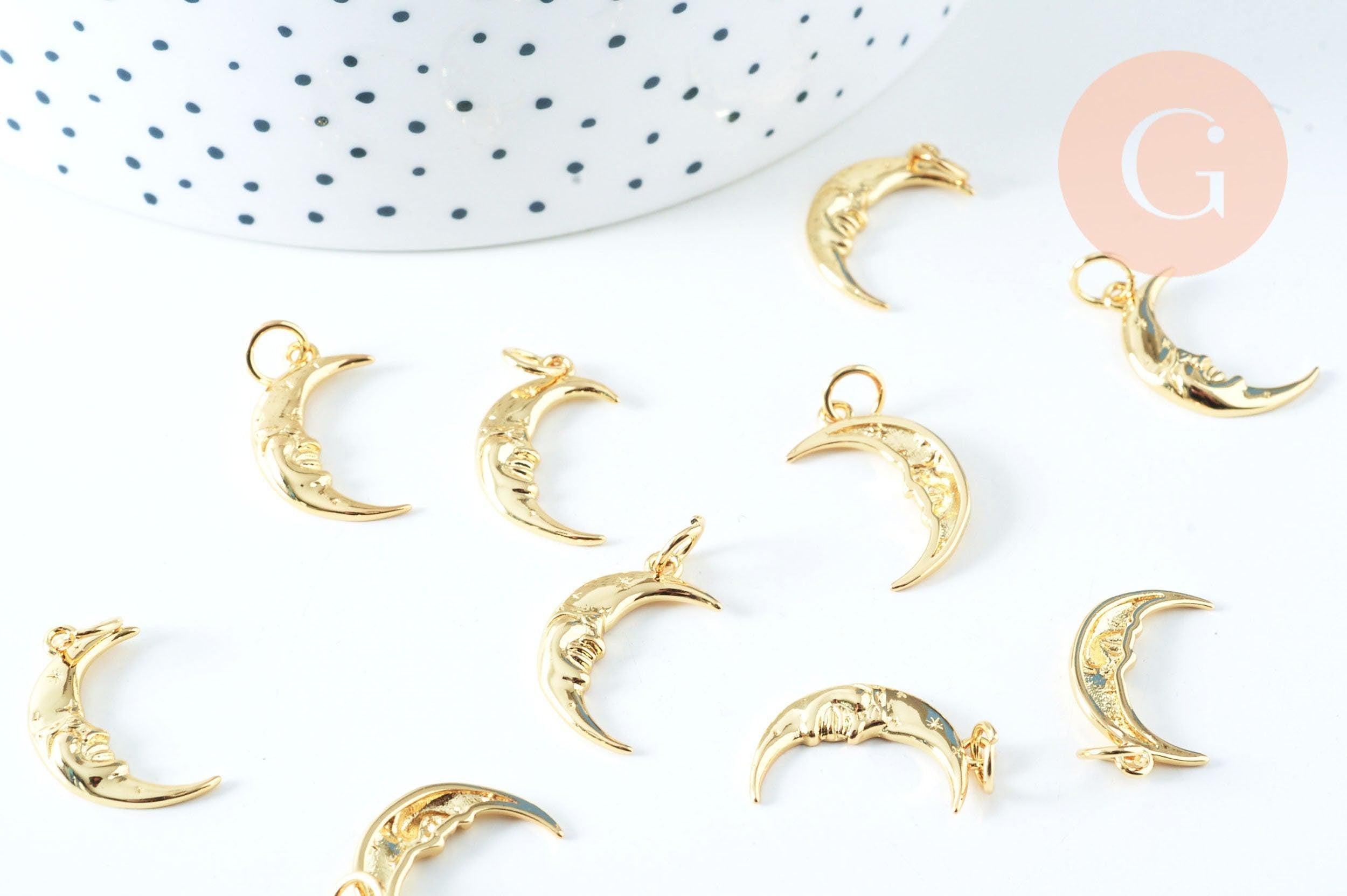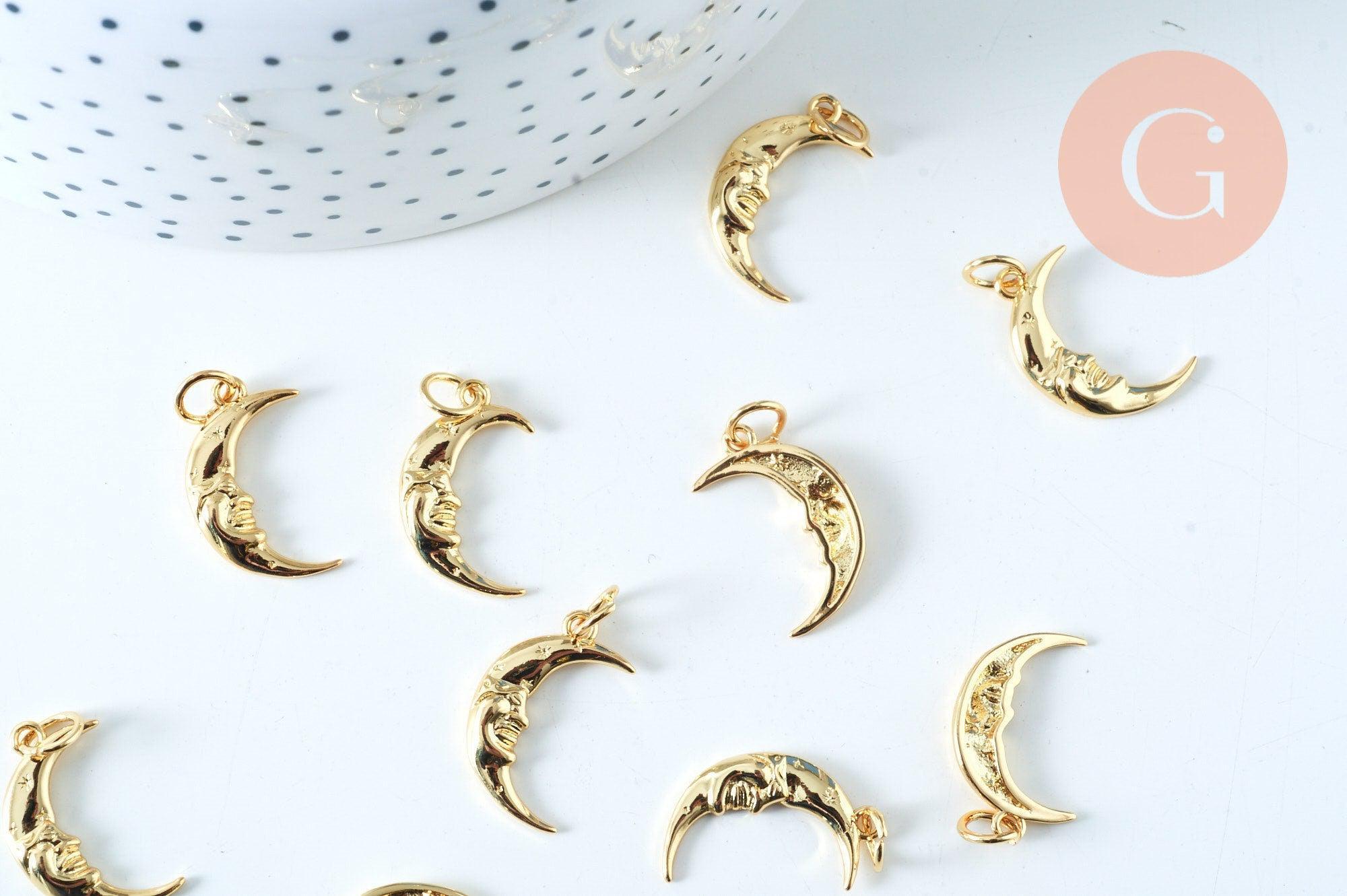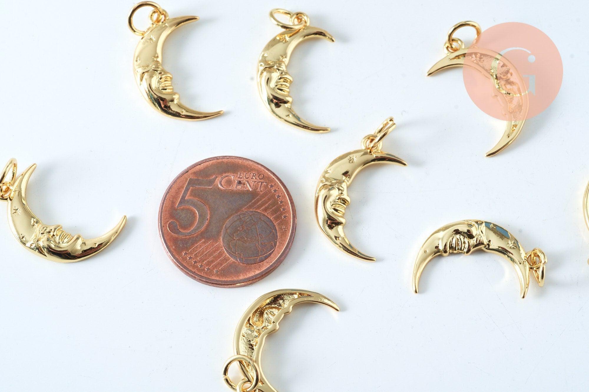 Pendentif rond lune étoiles laiton doré 16K étoile zircon 15.3mm, un pendentif doré avec cristaux pour création bijoux, x1 G6306