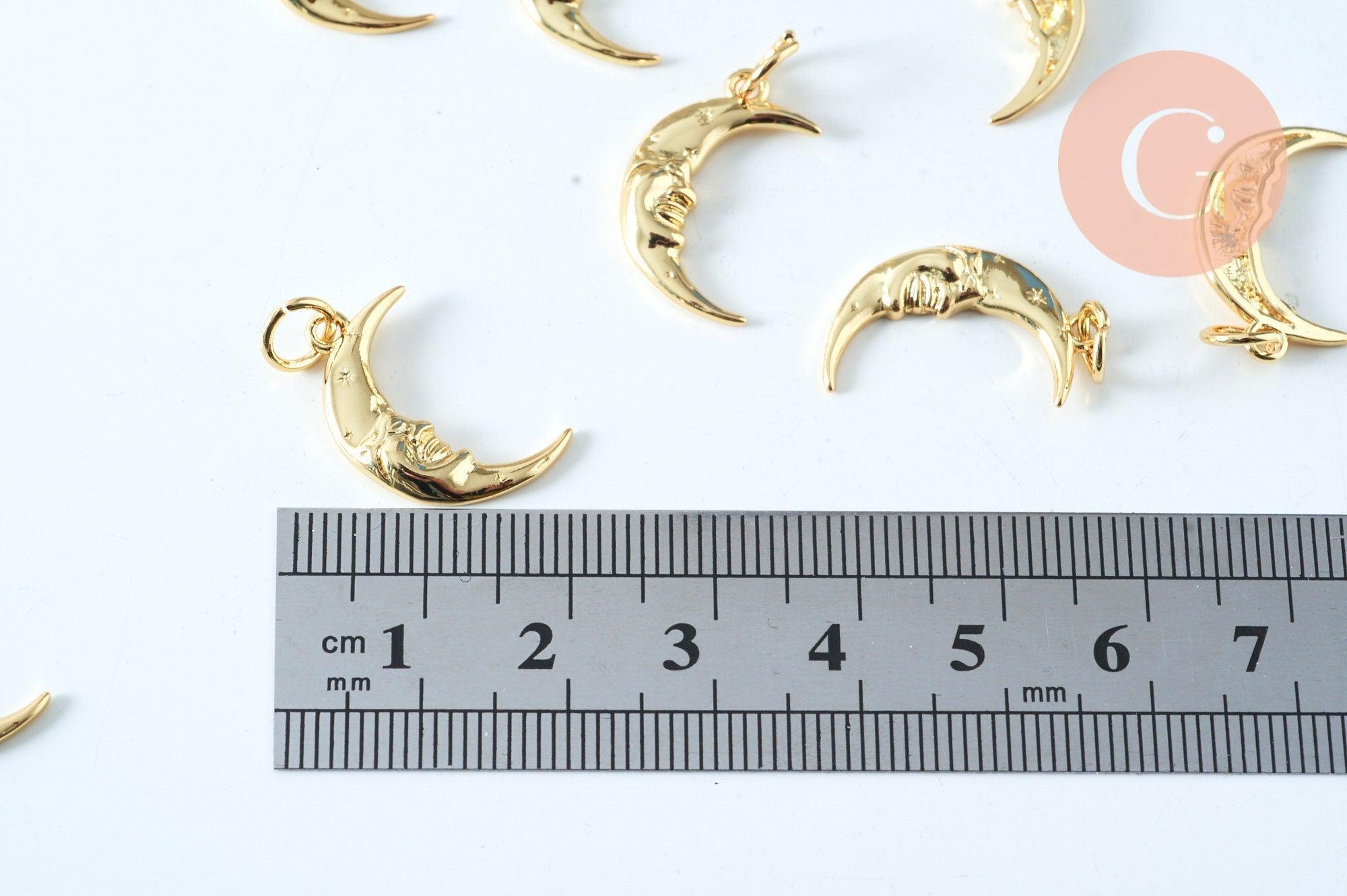 Colgante estrella luna redonda Latón bañado en oro de 16 quilates estrella circonita 15,3 mm, un colgante de oro con cristales para la creación de joyas, x1 G6306