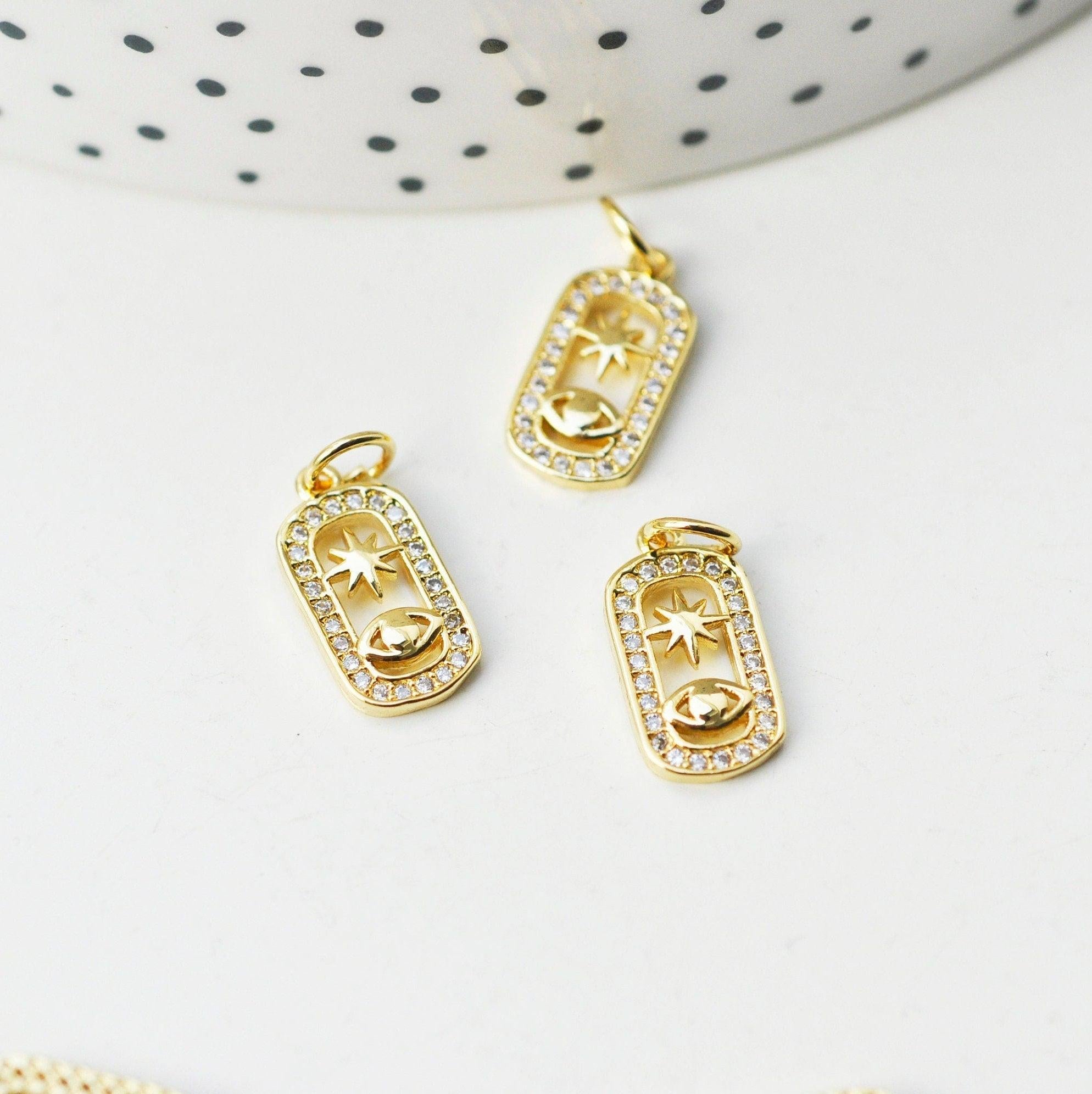 Colgante de ojo de sol con circonita de latón de 18 quilates, colgante de amuleto de la suerte dorado, 13,5 mm cada uno