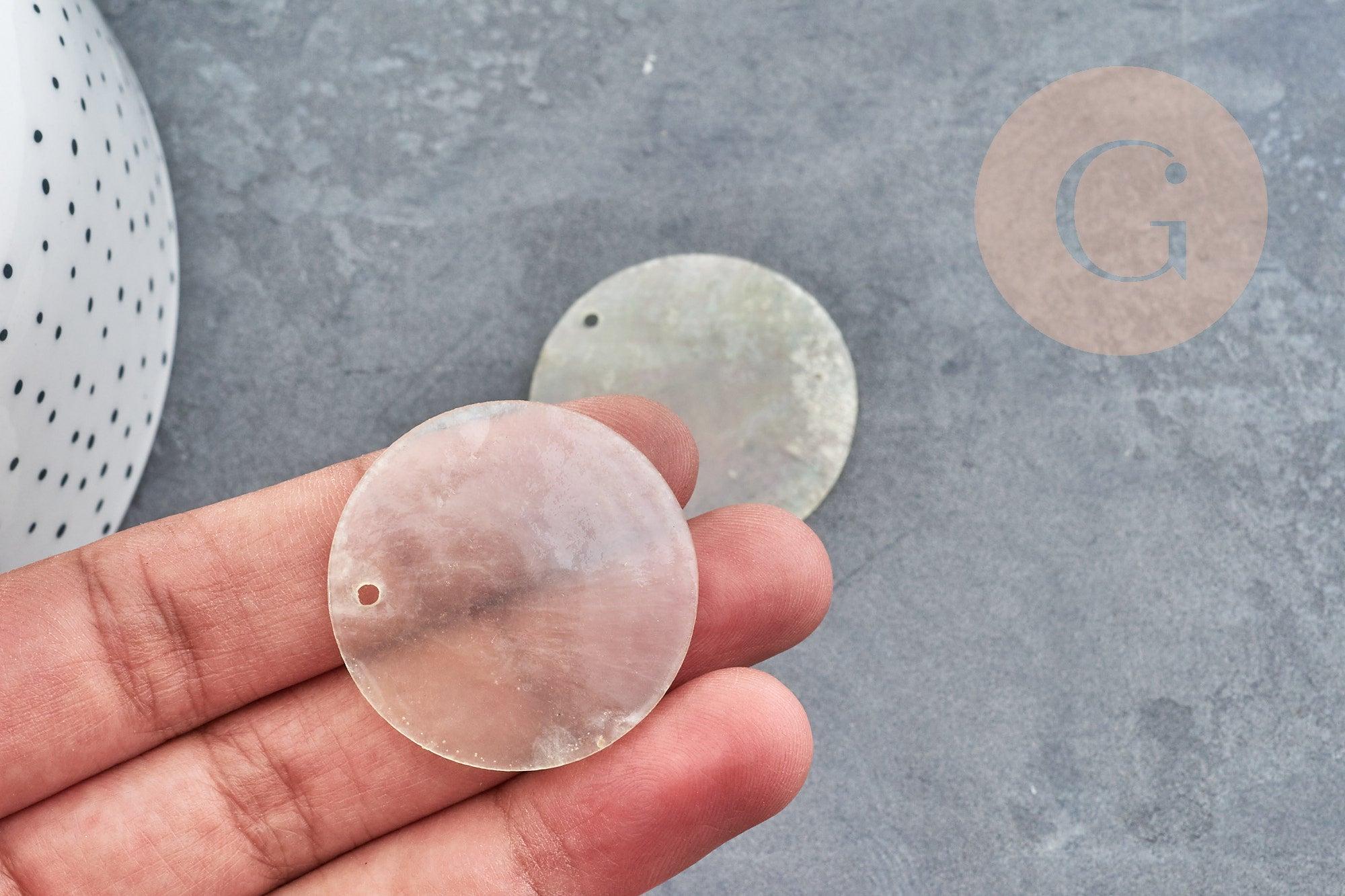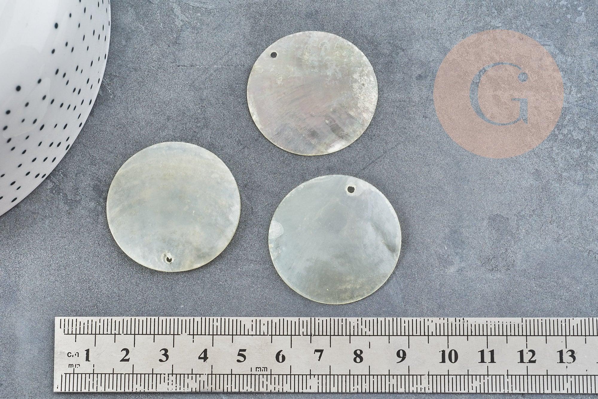 Pendentif rond nacre naturelle blanche 35mm, x5 (G8277)