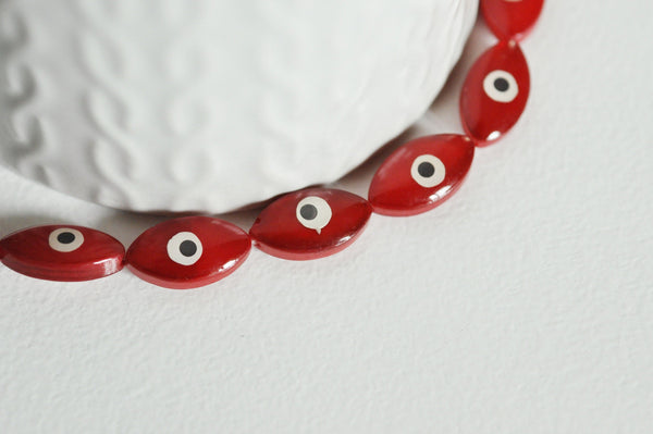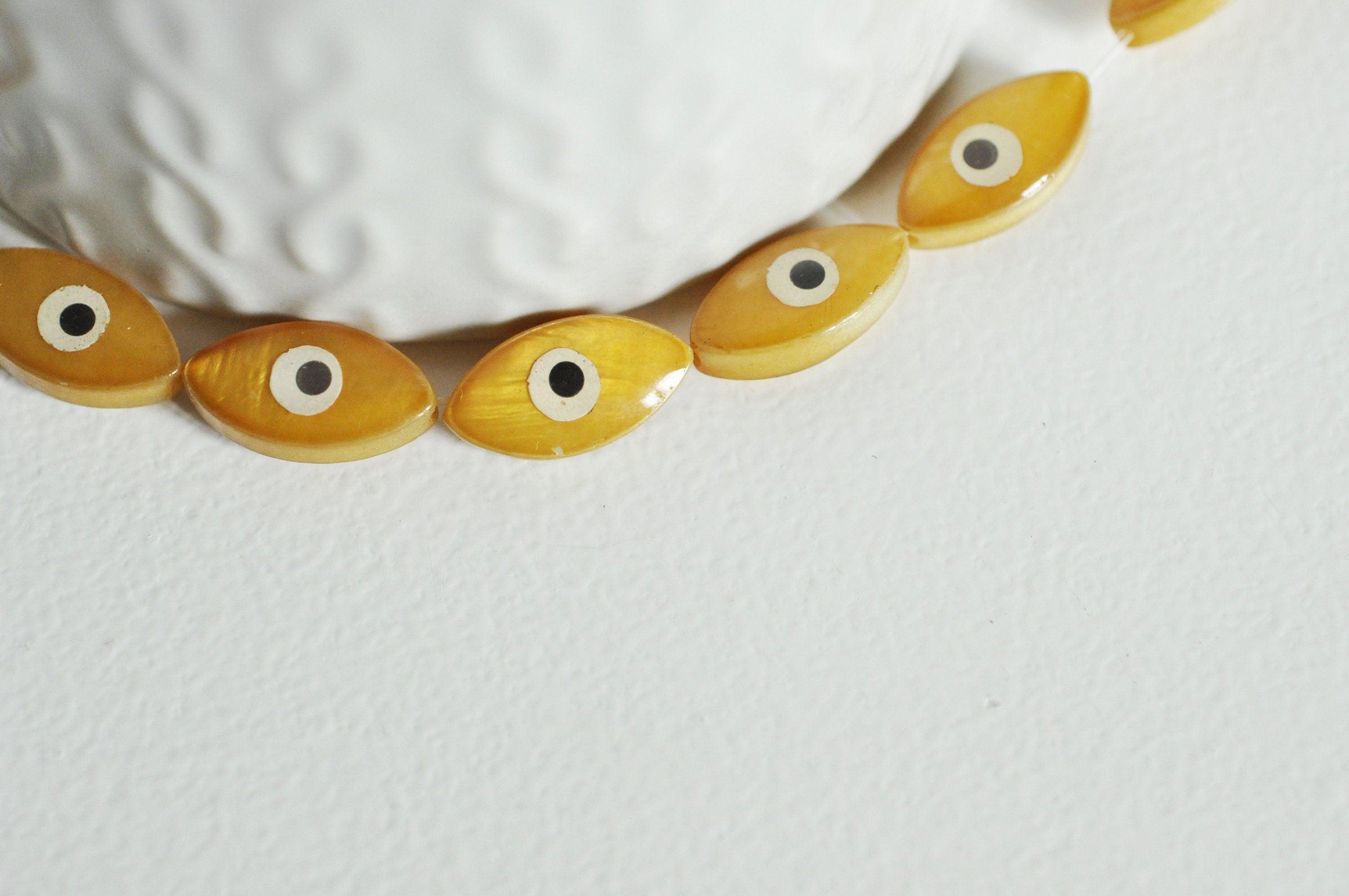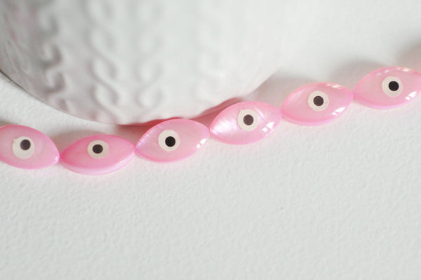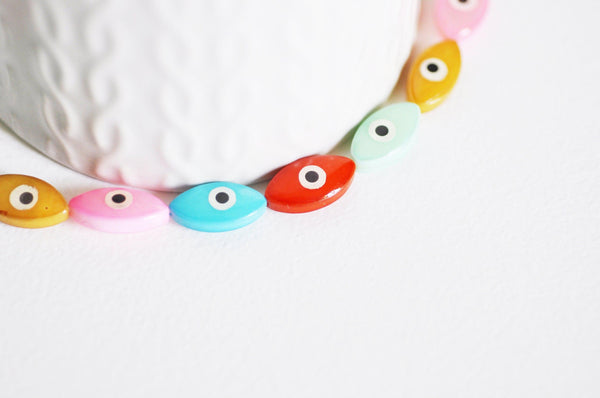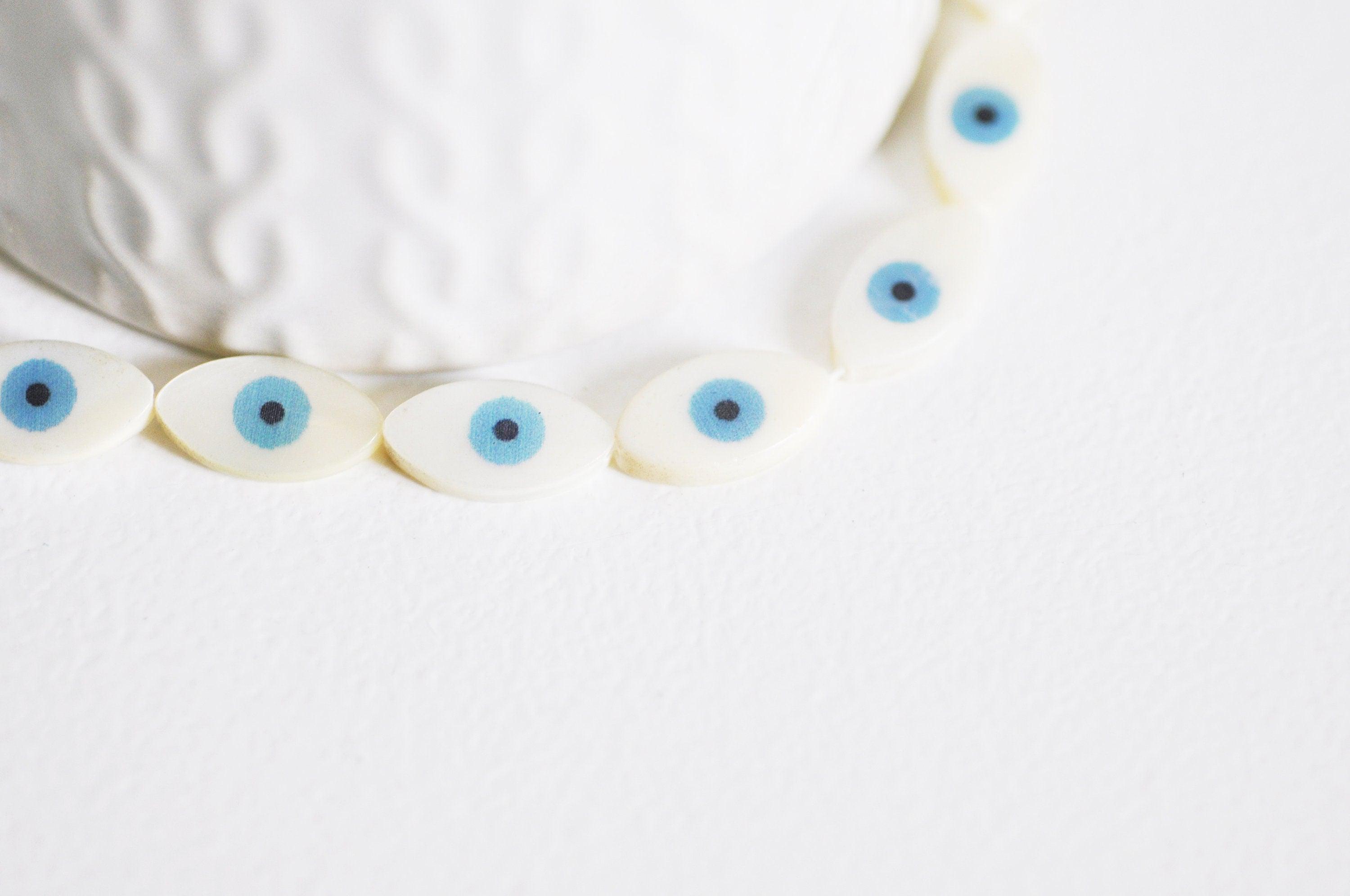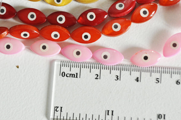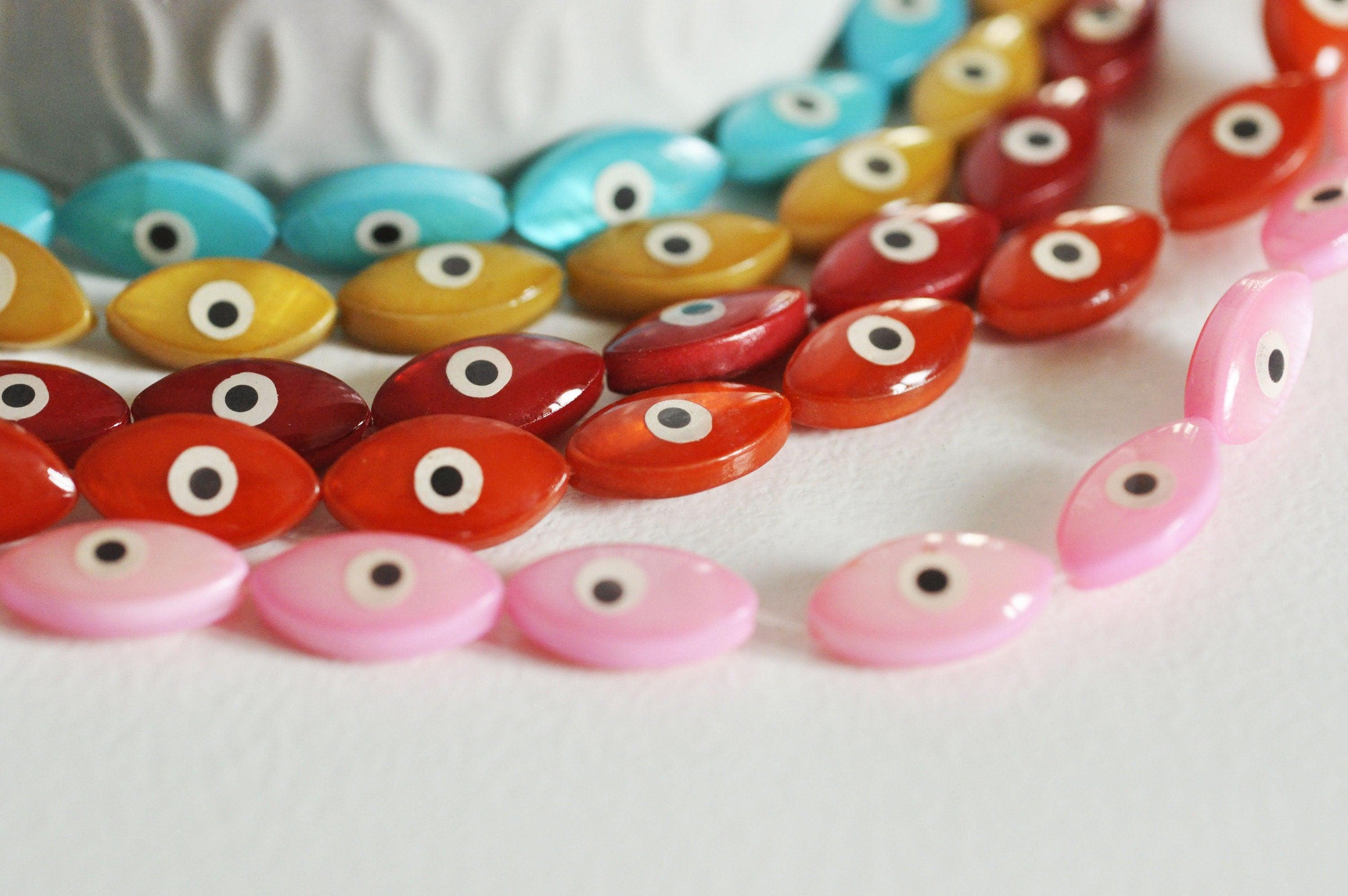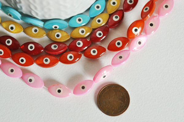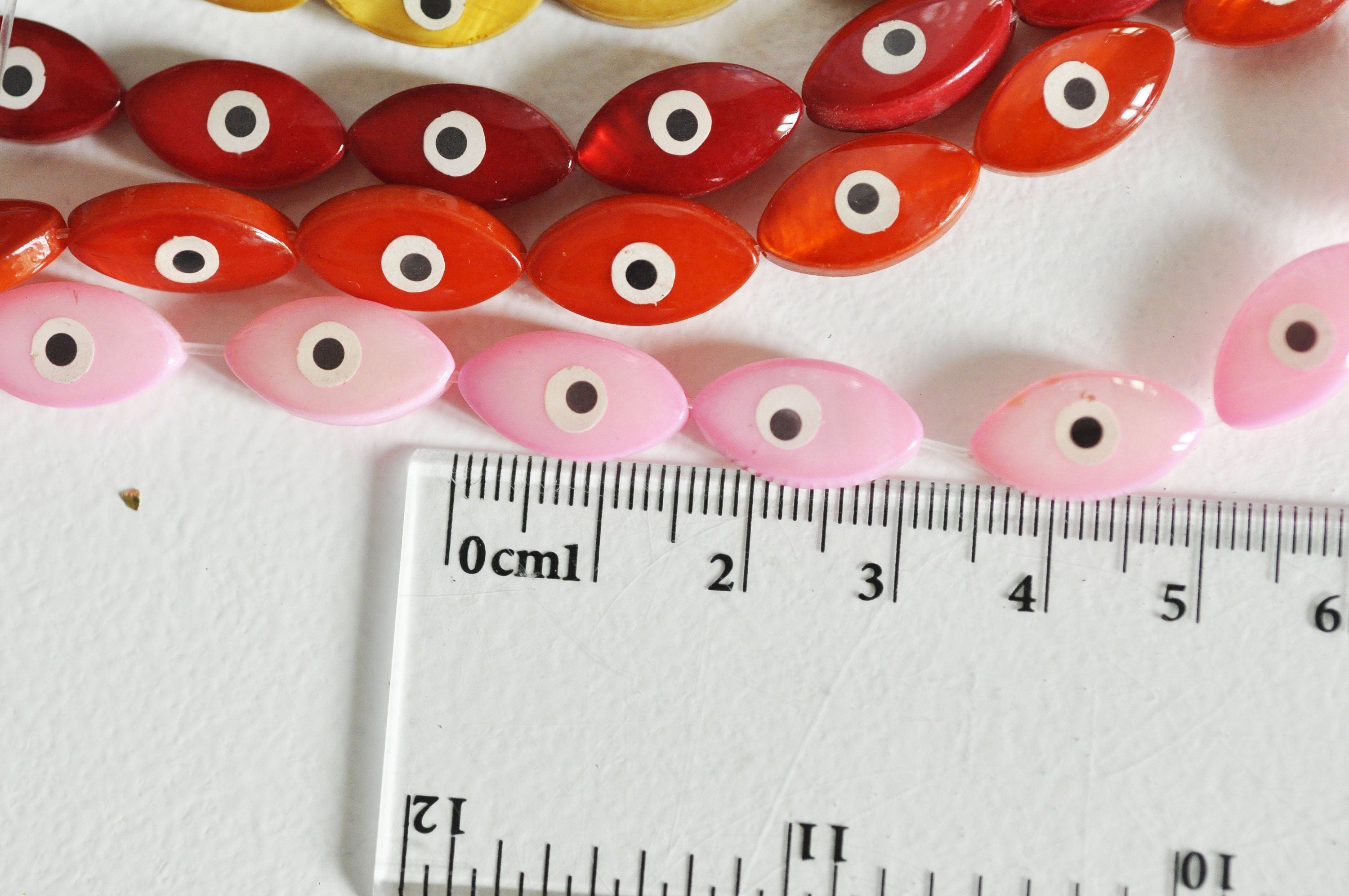 Cuentas de nácar coloridas con forma de ojo malvado, amuleto de la suerte, gri-gri, 15 mm, tira de 25 cuentas, x1 (G0300)