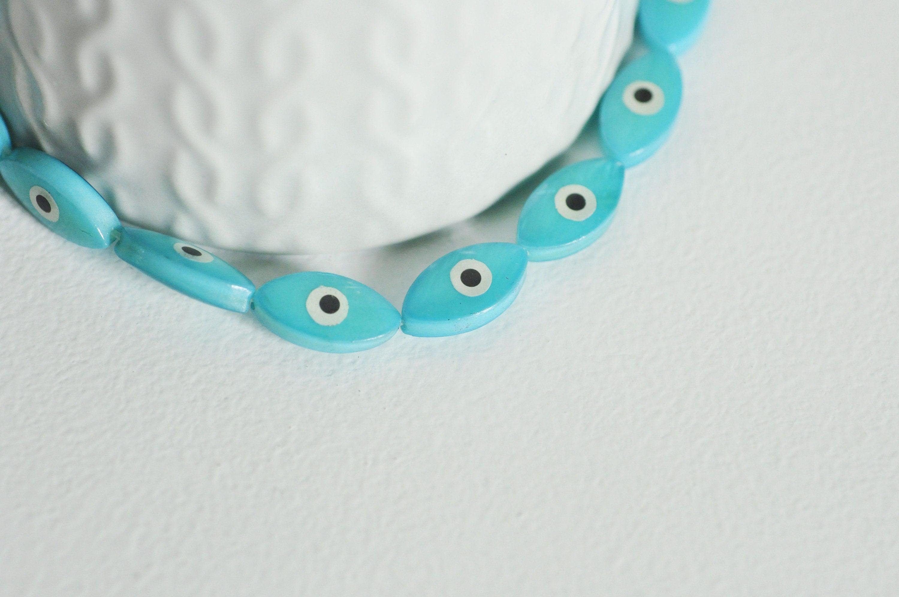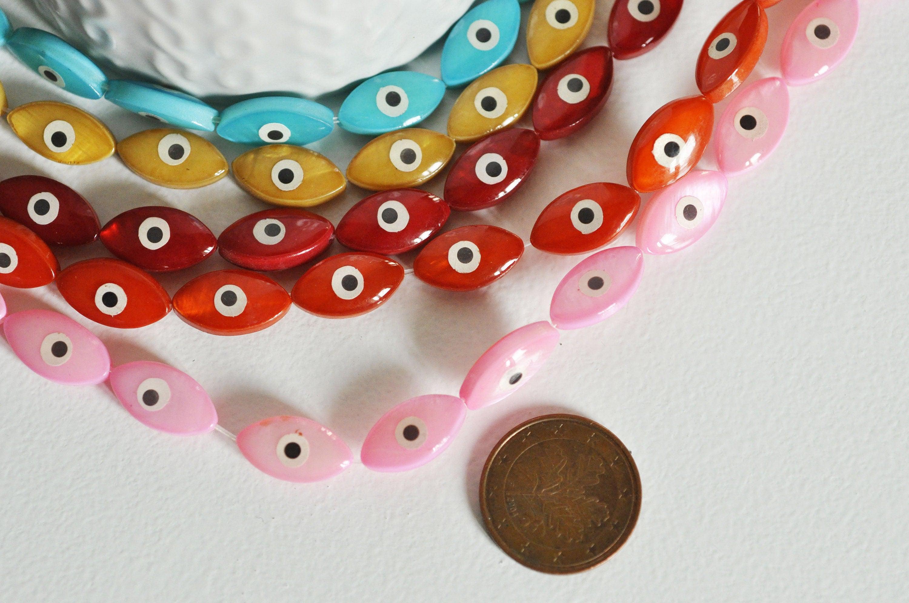 Para personalizar tus joyas, apuesta por este hilo de 25 cuentas de nácar de colores. Representando el ojo de la suerte.