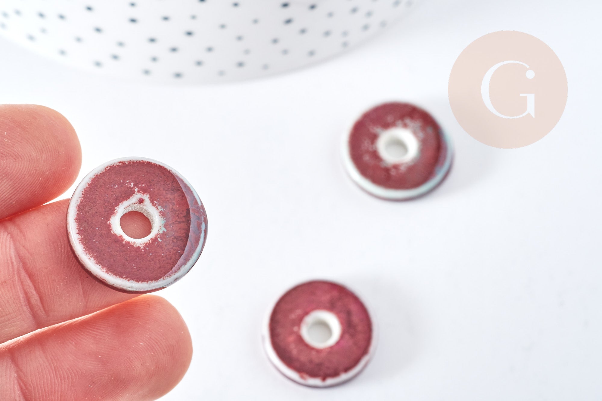 Como cuenta de collar : Esta cuenta de porcelana se puede utilizar para crear un collar original y elegante en una de nuestras cadenas. Su forma redonda y de donut añadirá un toque de fantasía a tus joyas, mientras que los colores verde y marrón aportarán un toque de naturalidad y autenticidad. El acabado esmaltado de la perla añadirá un toque de brillo a tu creación.