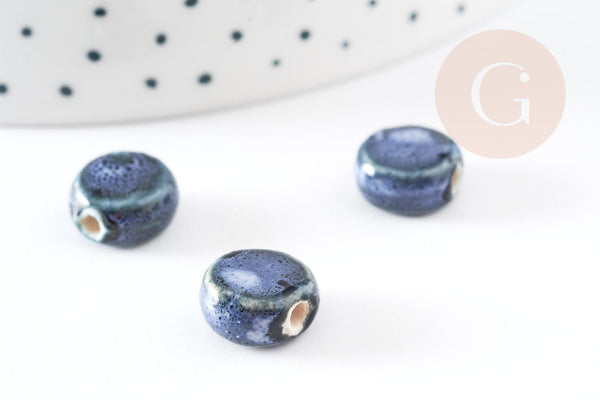 Cuenta redonda de porcelana esmaltada azul de 10,5 mm, cuenta de cerámica geométrica para hacer joyas de cerámica, x5 G9199