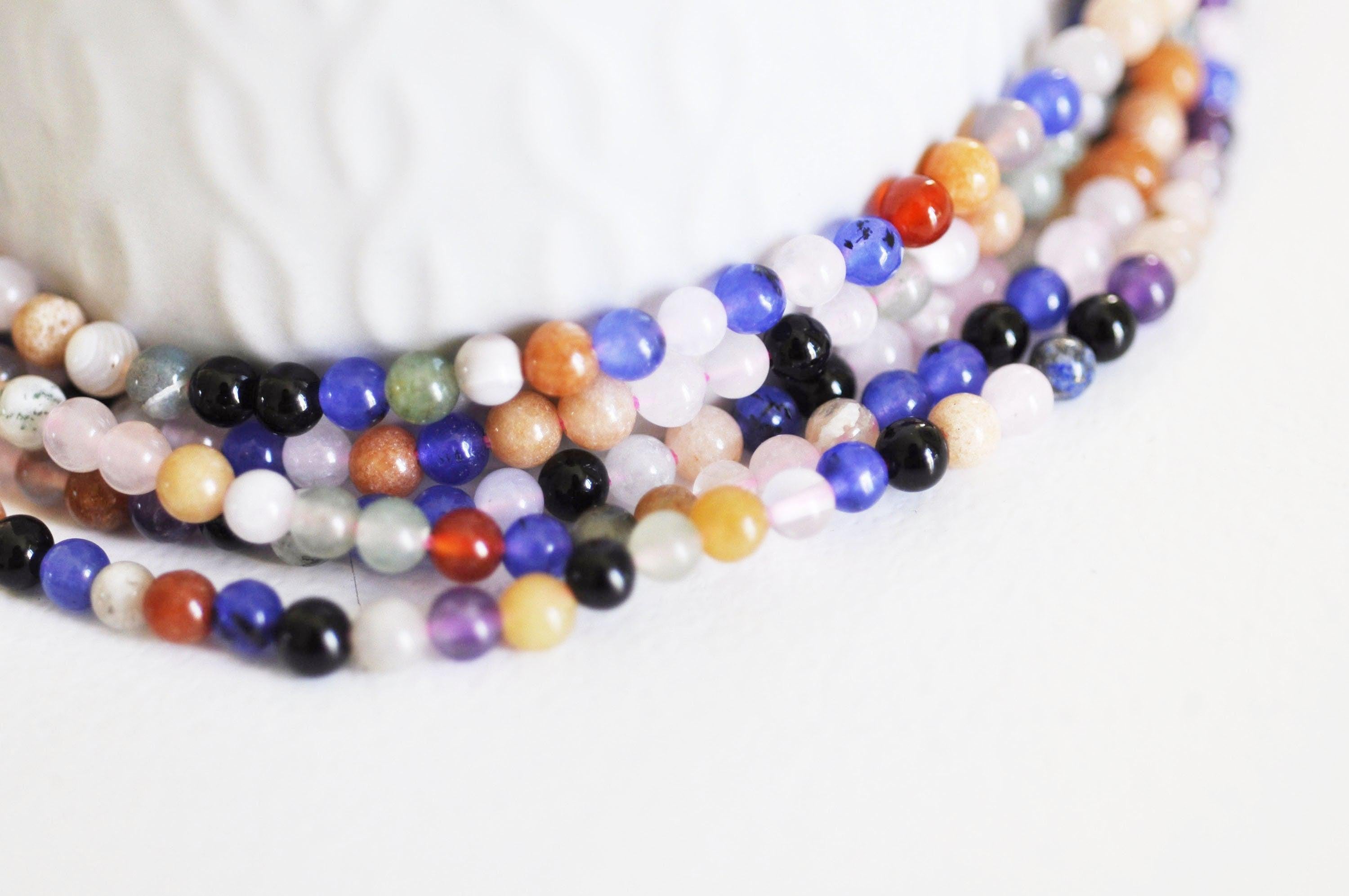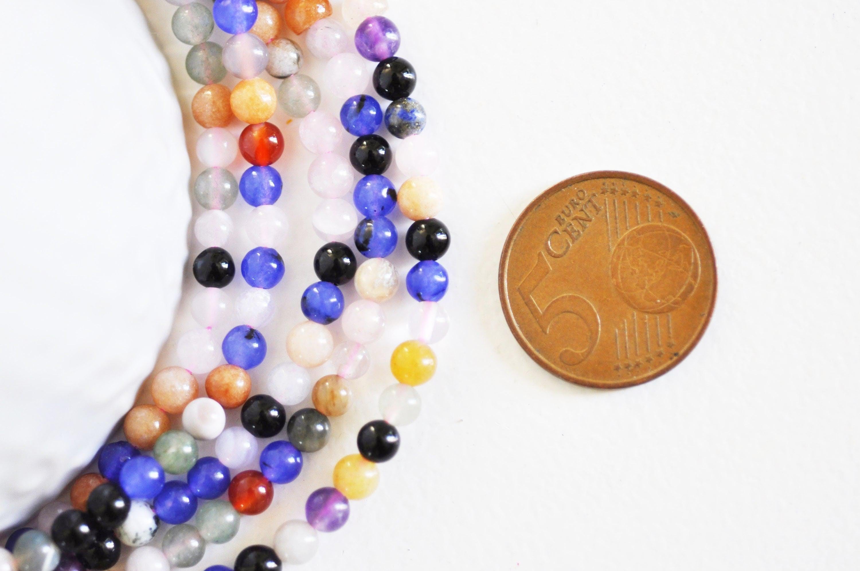 Cuentas de jade redondas multicolores, cuentas de jade, piedra natural, jade natural, cuentas de piedra, cuentas facetadas, jade, 4 mm, tira de 95 cuentas