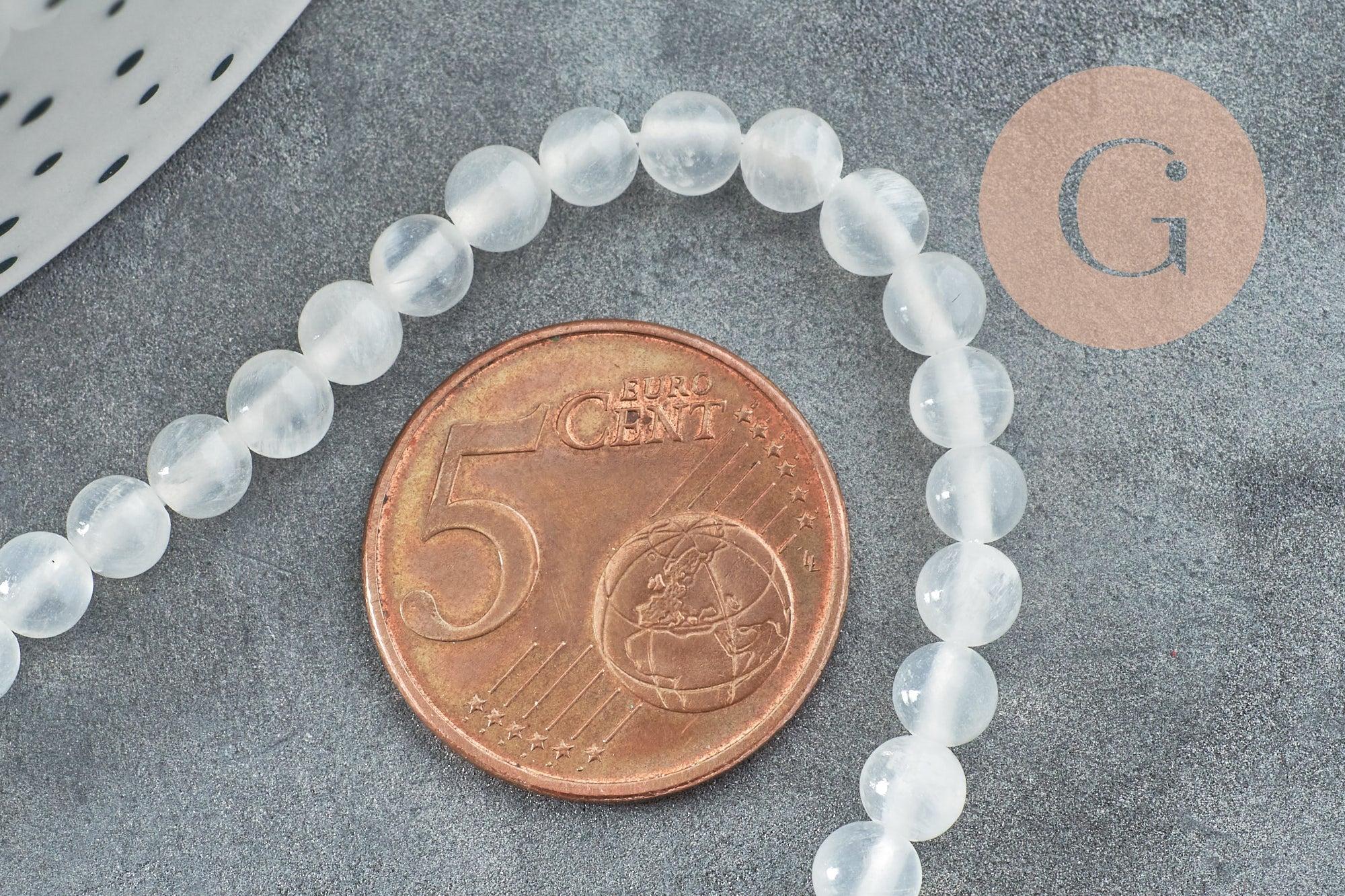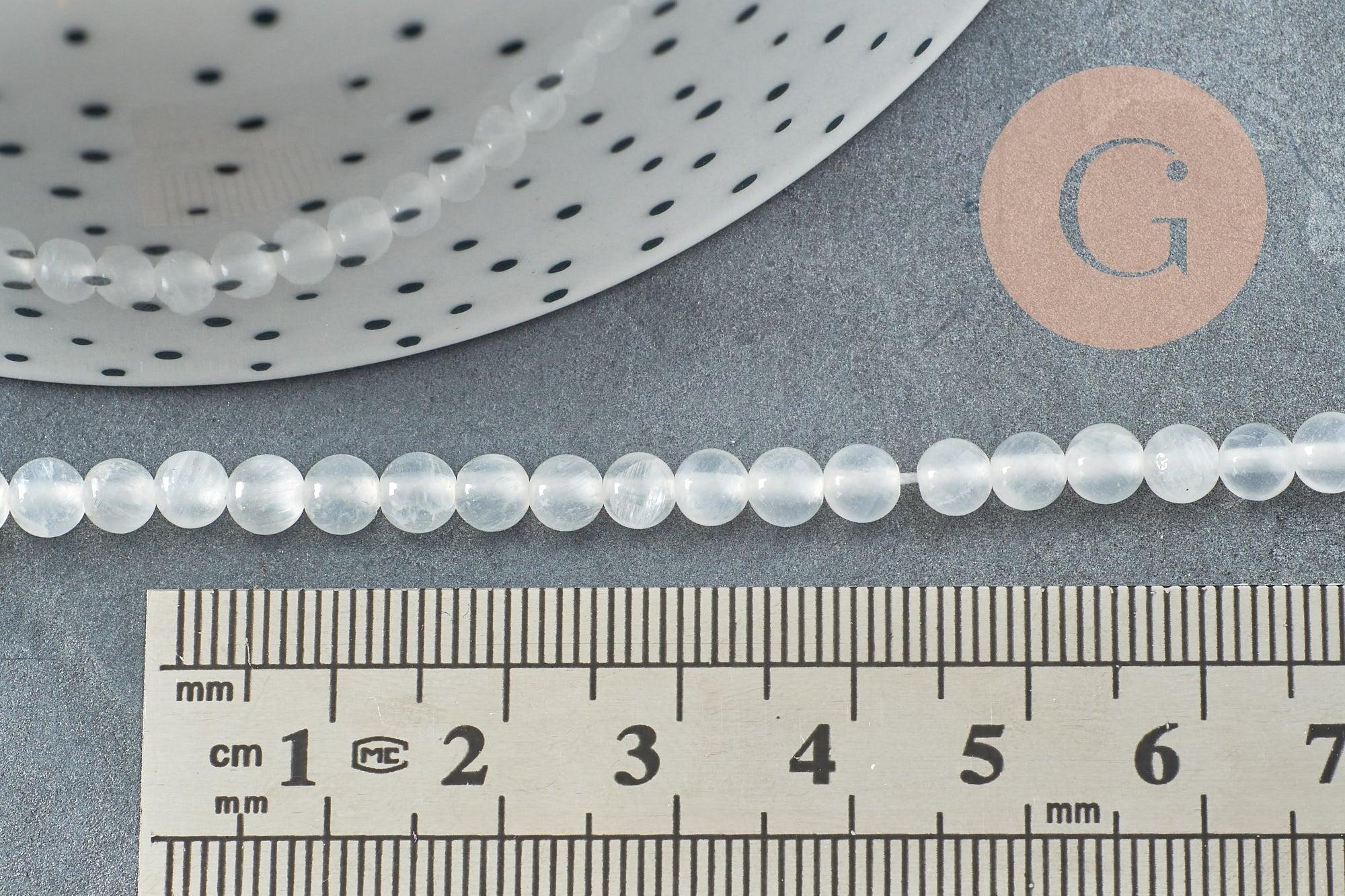 Cuenta redonda de selenita 4mm, selenita natural, piedra blanca natural, 4mm, alambre de 41cm, x1 G4381