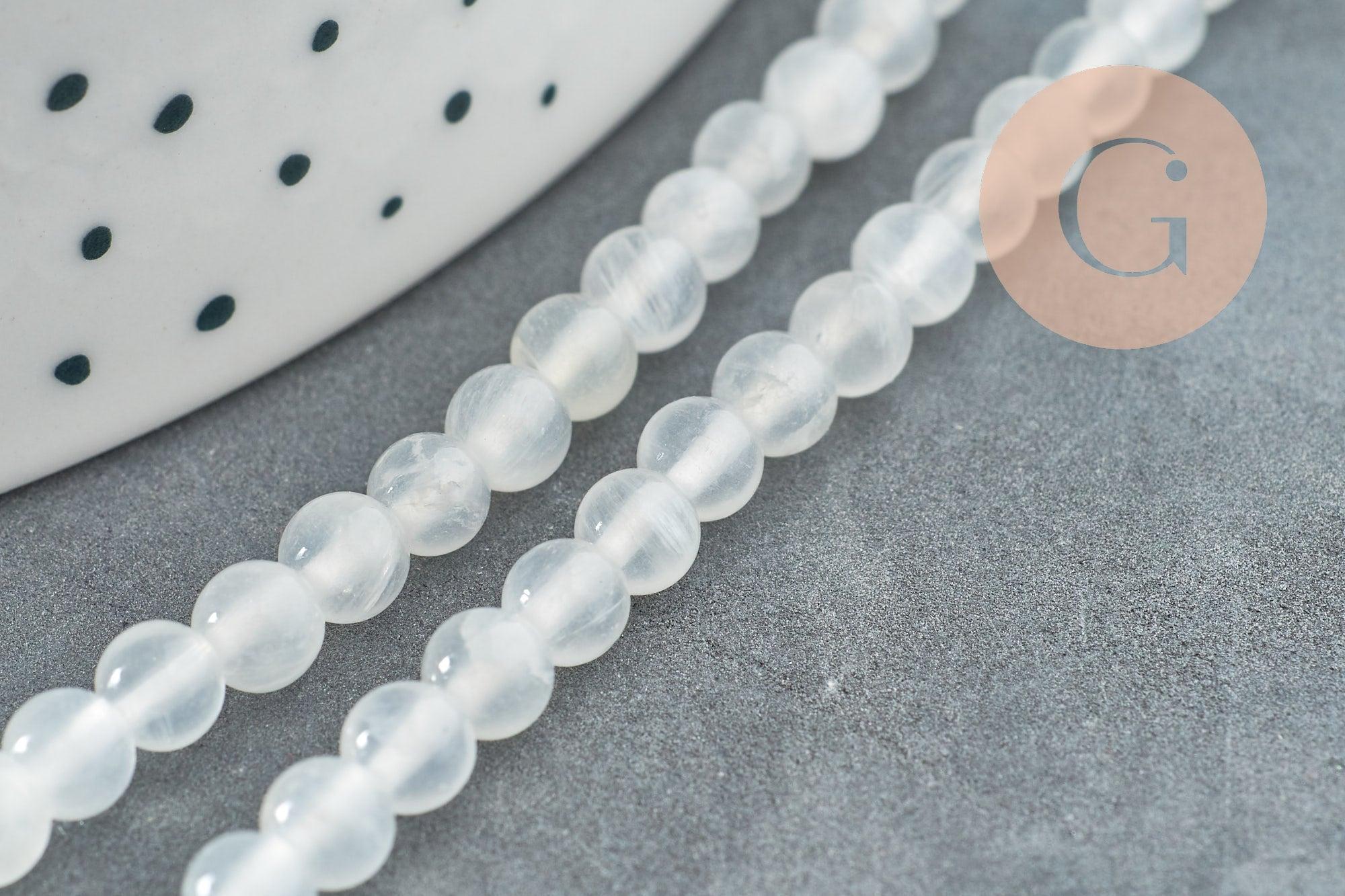 Una magnífica hebra de aproximadamente 90 cuentas redondas de selenita natural.