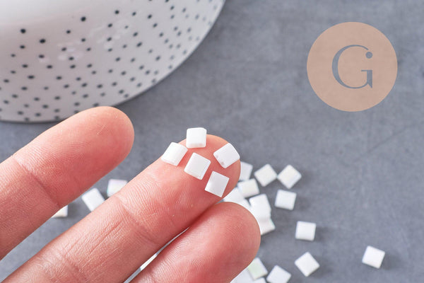Haz todo lo tuyo Bisutería DIY Usando estas pequeñas cuentas cuadradas con dos agujeros. Vuelve a lo básico con estos Perlas de vidrio blanco iridiscente.