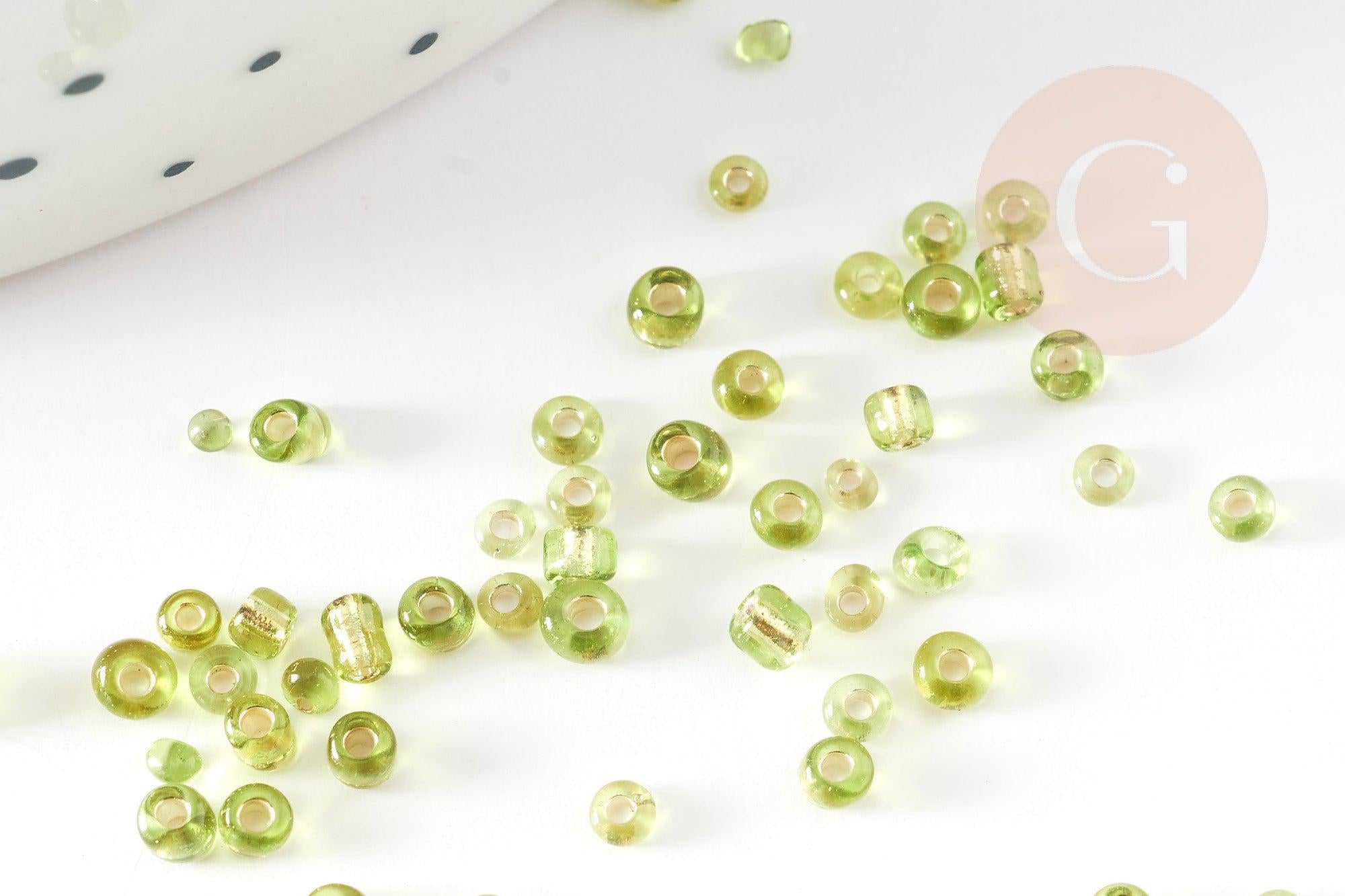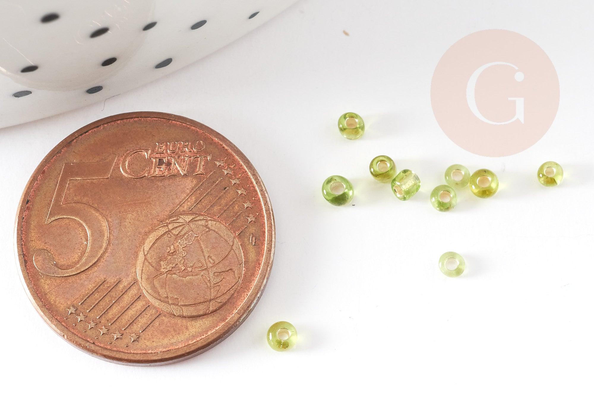 Petite perles de rocaille vert transparent 2.5mm, perles rocaille verre, pour perlage, x 10gr (G3667)