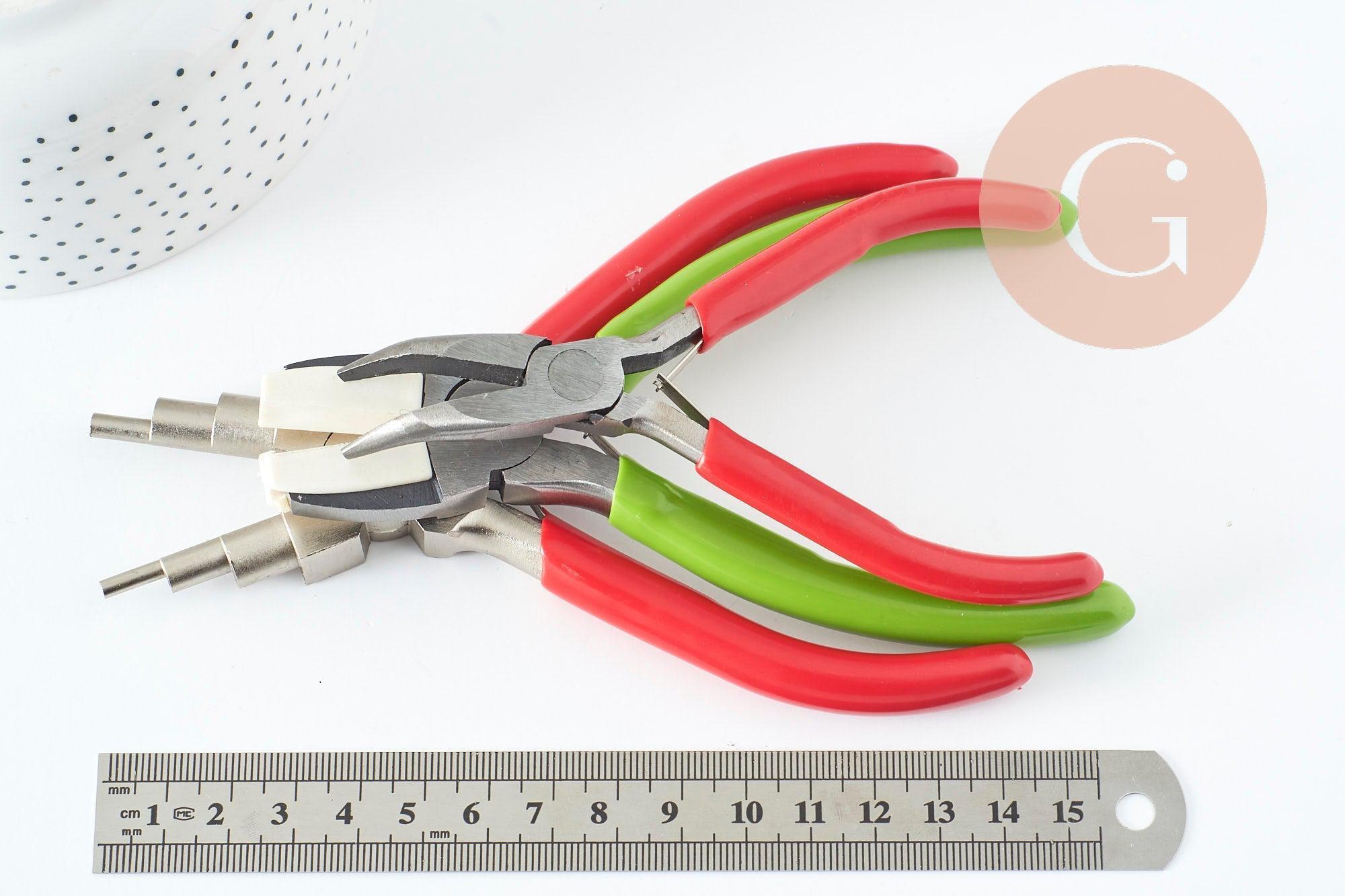 3 alicates imprescindibles para realizar y crear joyas . Pinzas metálicas con mangos antideslizantes. Estos originales alicates complementarán tus alicates de corte, con puntas planas y redondas. Materiales utilizados: Acero al carbono - 1 alicate de puntas redondas de diferentes diámetros, para crear rizos - 1 Alicate de punta curva. - 1 Alicate plano con puntas de plástico para no marcar el metal Dimensiones Longitud: 124~155 mm Ancho: 49~62 Espesor: 9~11 mm Se vende en juegos de 3 https://www. gingerlily.fr Sugerencia de presentación, fotos no contractuales.