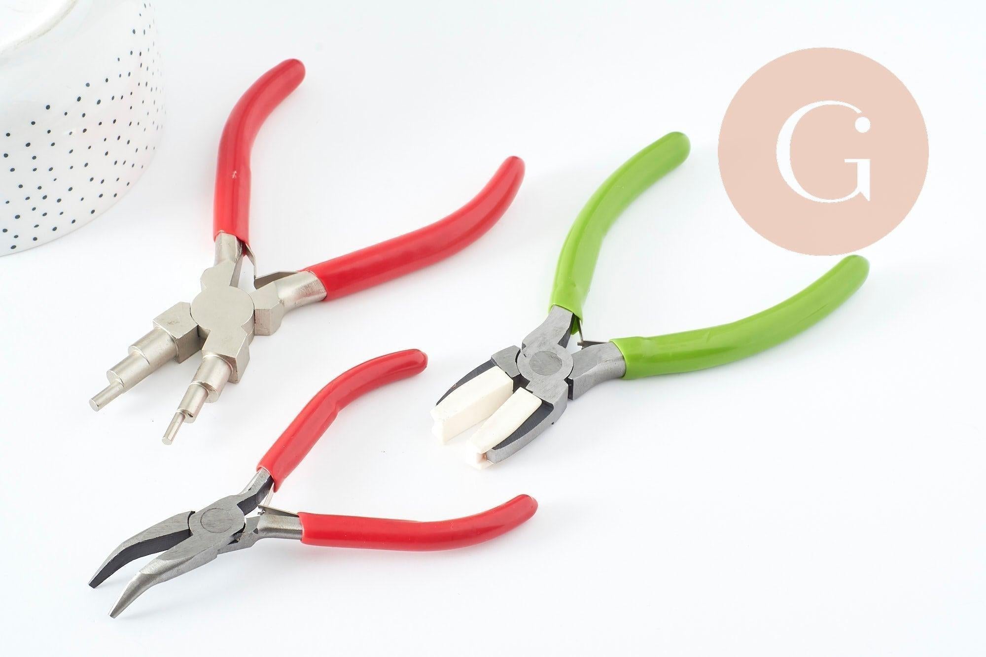 Alicates para hacer joyas, pendientes, punta curva, plana, alicates para la creación de joyas x3 (G10018)
