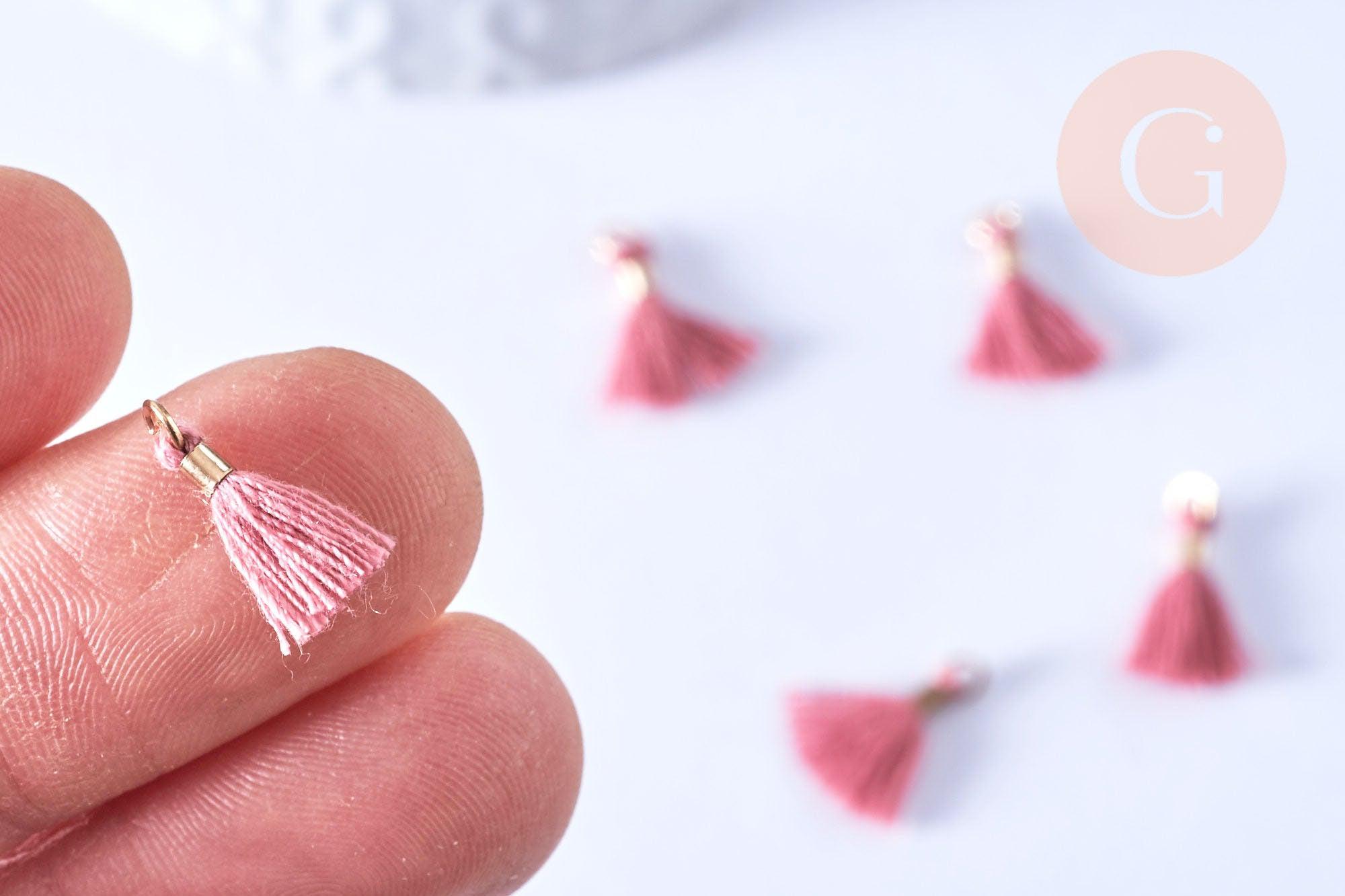 EP Pompon rosa viejo poliéster soporte dorado, decoracion pompones, pendientes pompones, elaboracion bisuteria bohemia, 10-15mm, 10