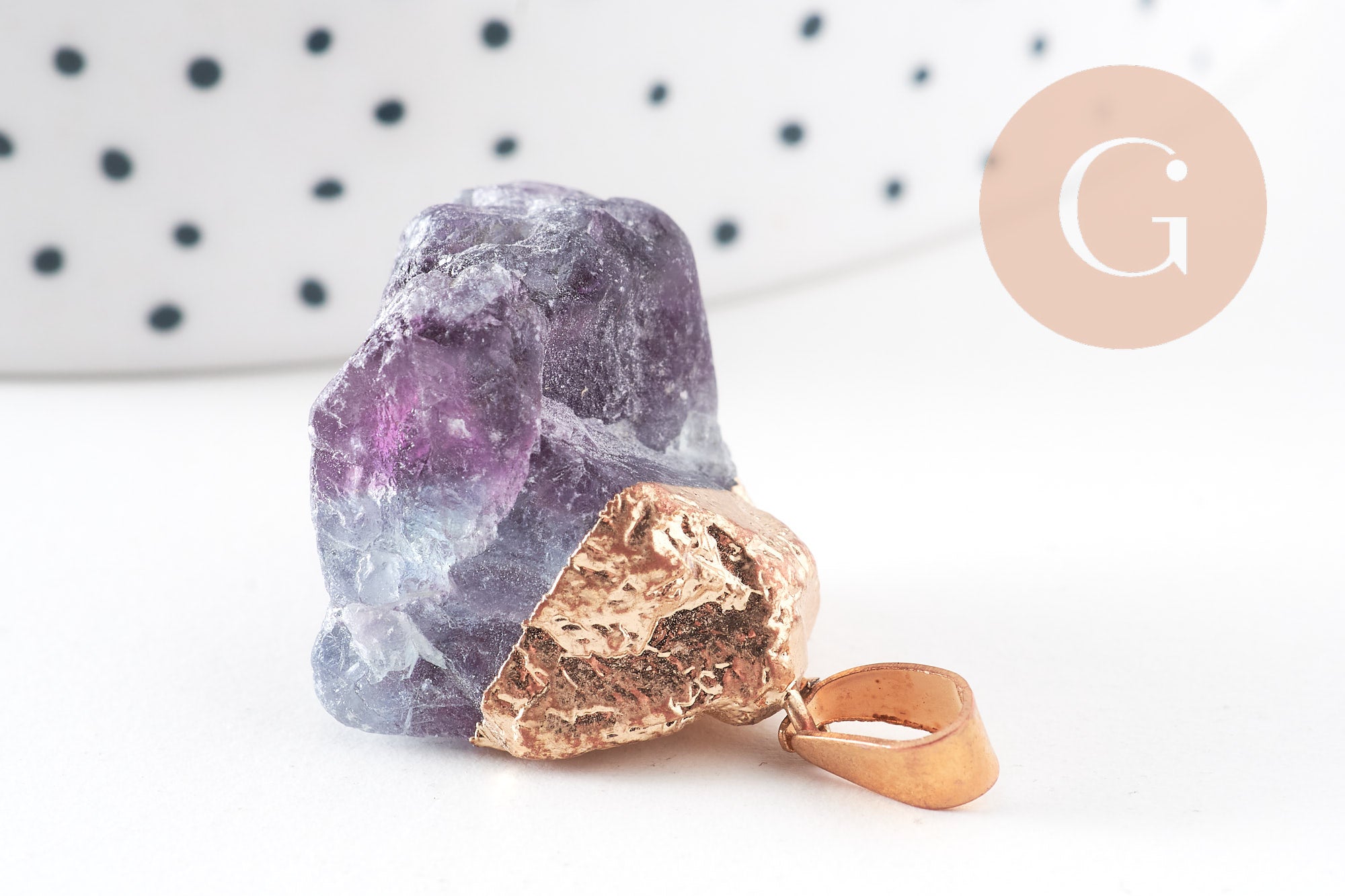 Colgante de fluorita natural en bruto, montura chapada en oro, piedra natural, piedra de fluorita, 1 unidad (G0849)
