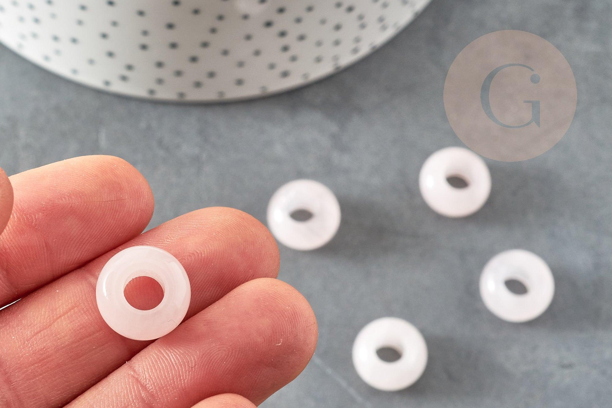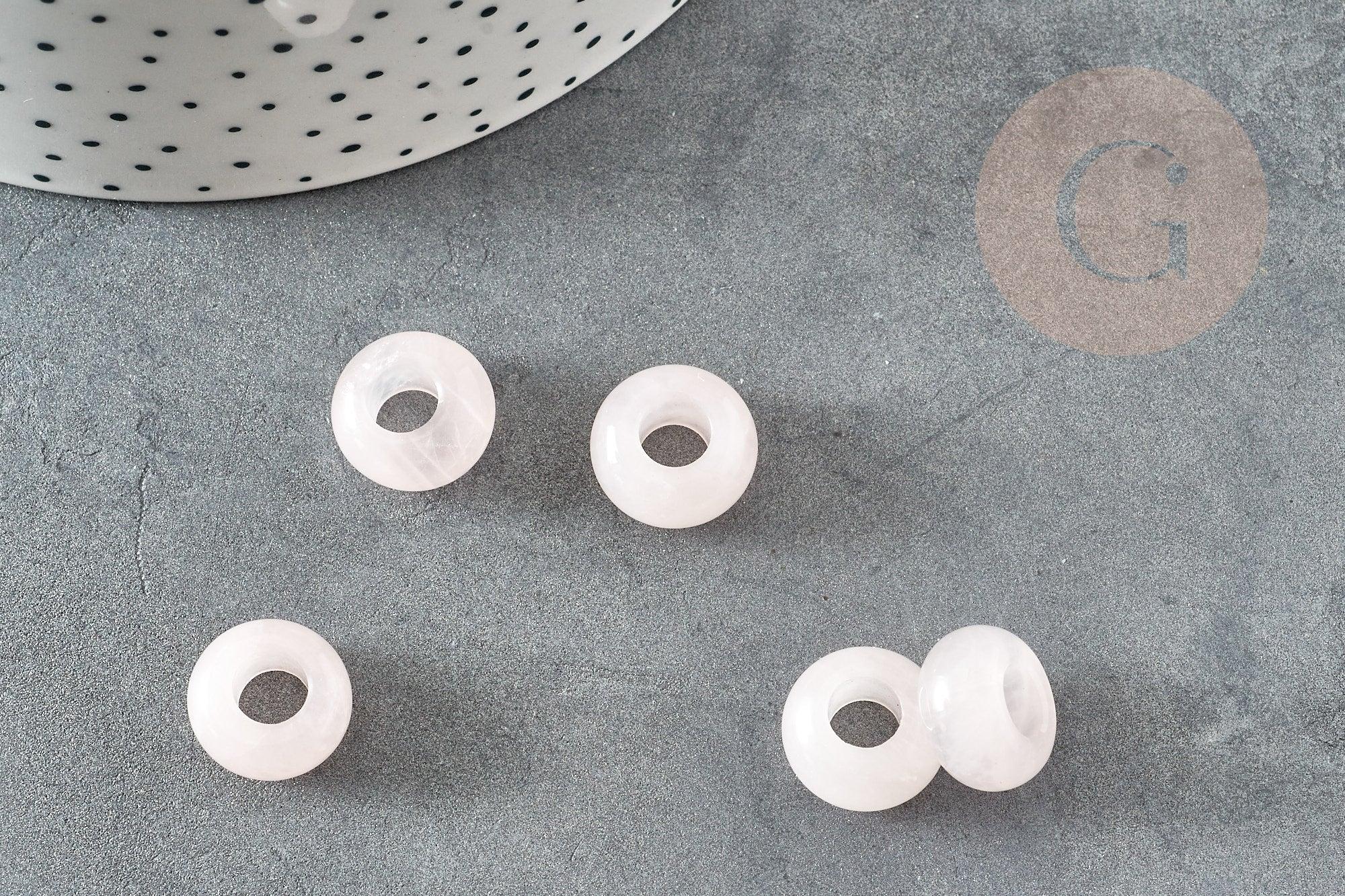 Encuentra estas cuentas en forma de rondelle en cuarzo rosa natural que te permitirán realizar todo tipo de bisutería DIY .