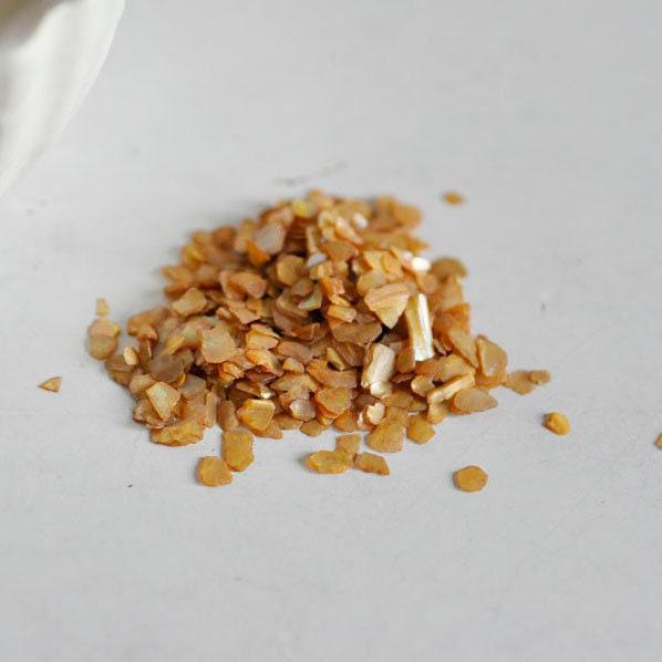 Esta arena de concha beige natural se puede utilizar para sus joyas mezclándola con resina. También se puede utilizar como decoración, colocado en un bonito recipiente con perlas o flores secas.