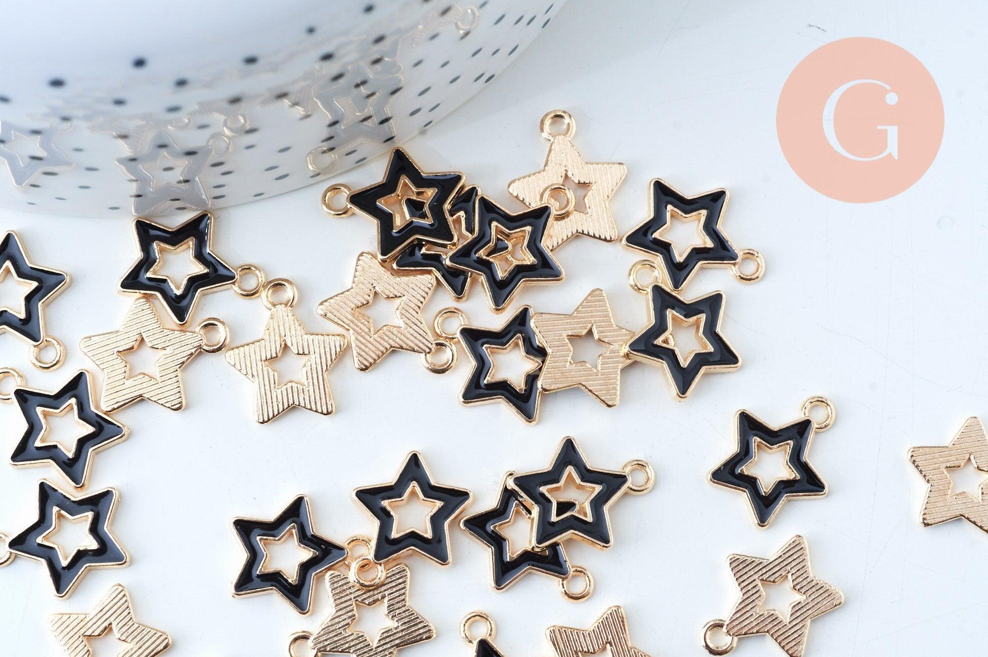 Un colgante de estrella en zamac dorado y resina negra para tus creaciones de joyería DIY.