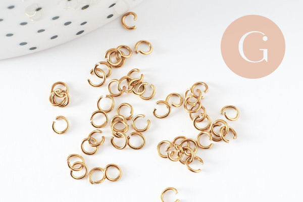 Anillos de unión de acero inoxidable IP 304 dorados 3,5x0,7 mm, x50 (G9585)
