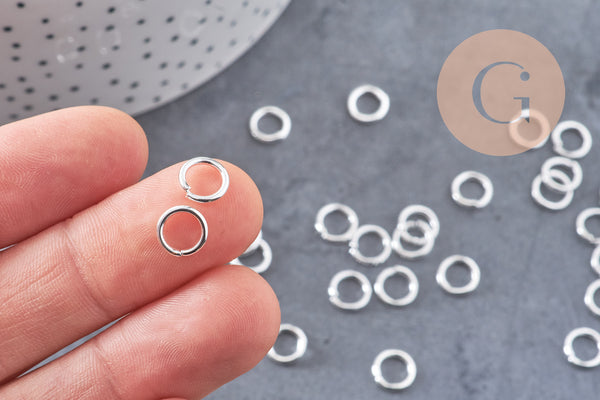 Anneaux ronds acier 304 inoxydable argenté 8mm x 1.2mm, x 50 anneaux (G10860)