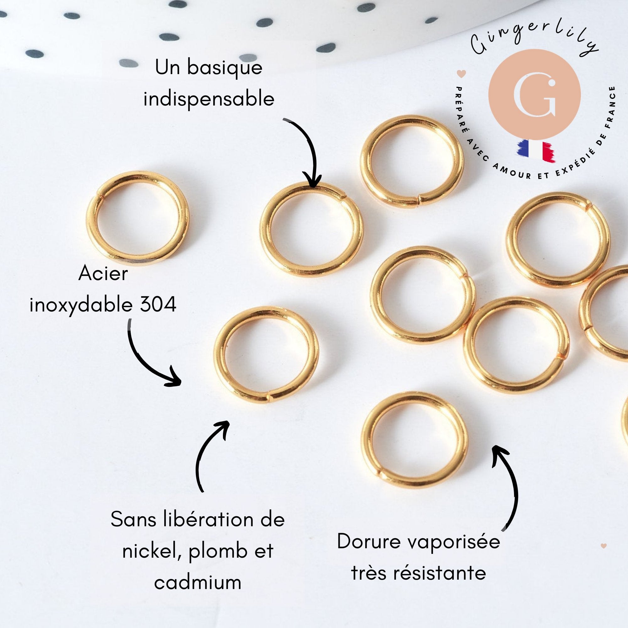 Anneaux ouverts ronds acier 304 inoxydable doré 8mm, x50 anneaux (G7711)