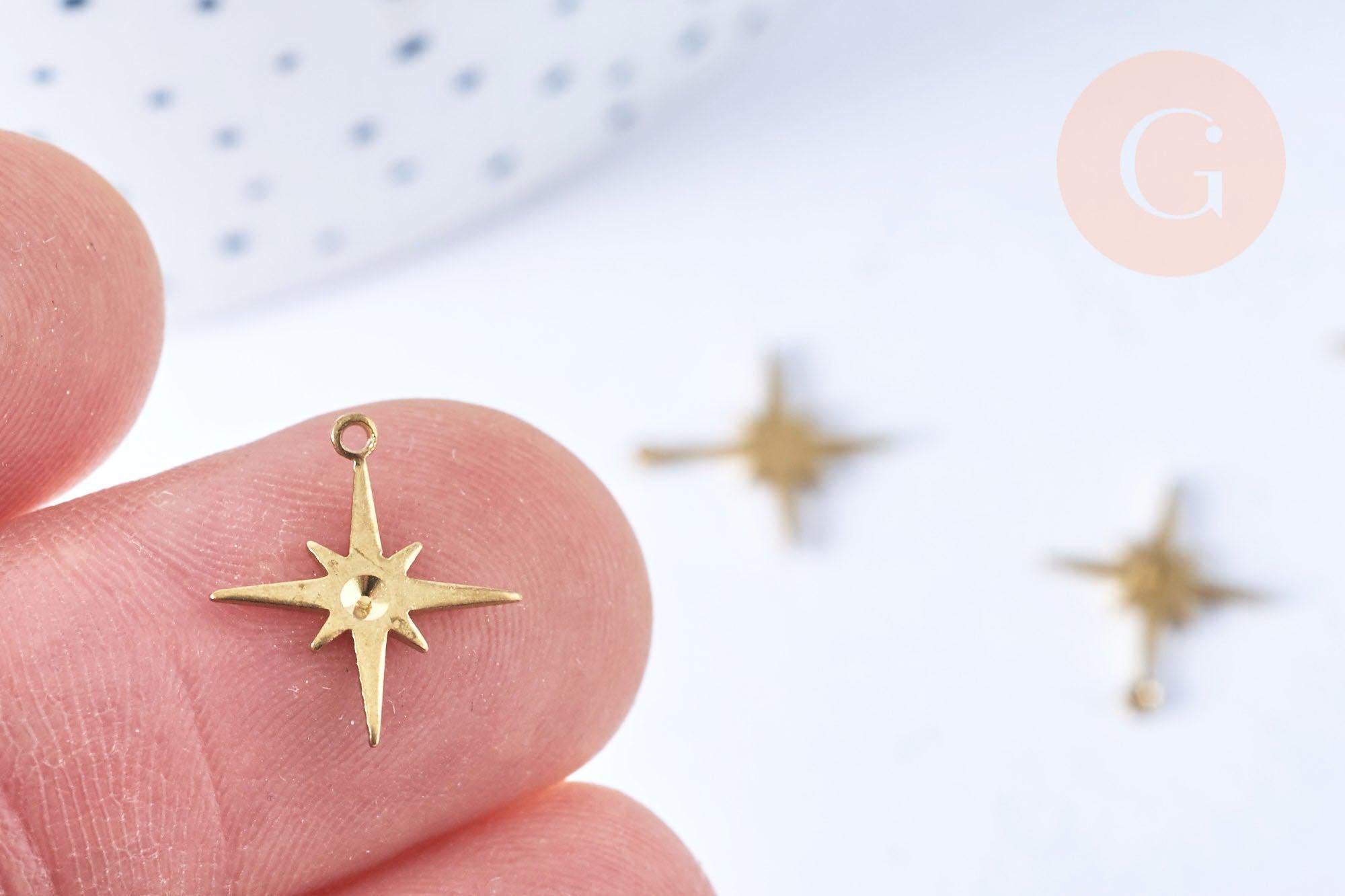 Pendentif étoile du nord laiton brut 13.5mm, x2 (G6533)