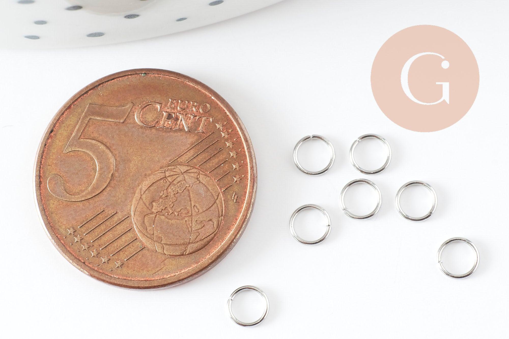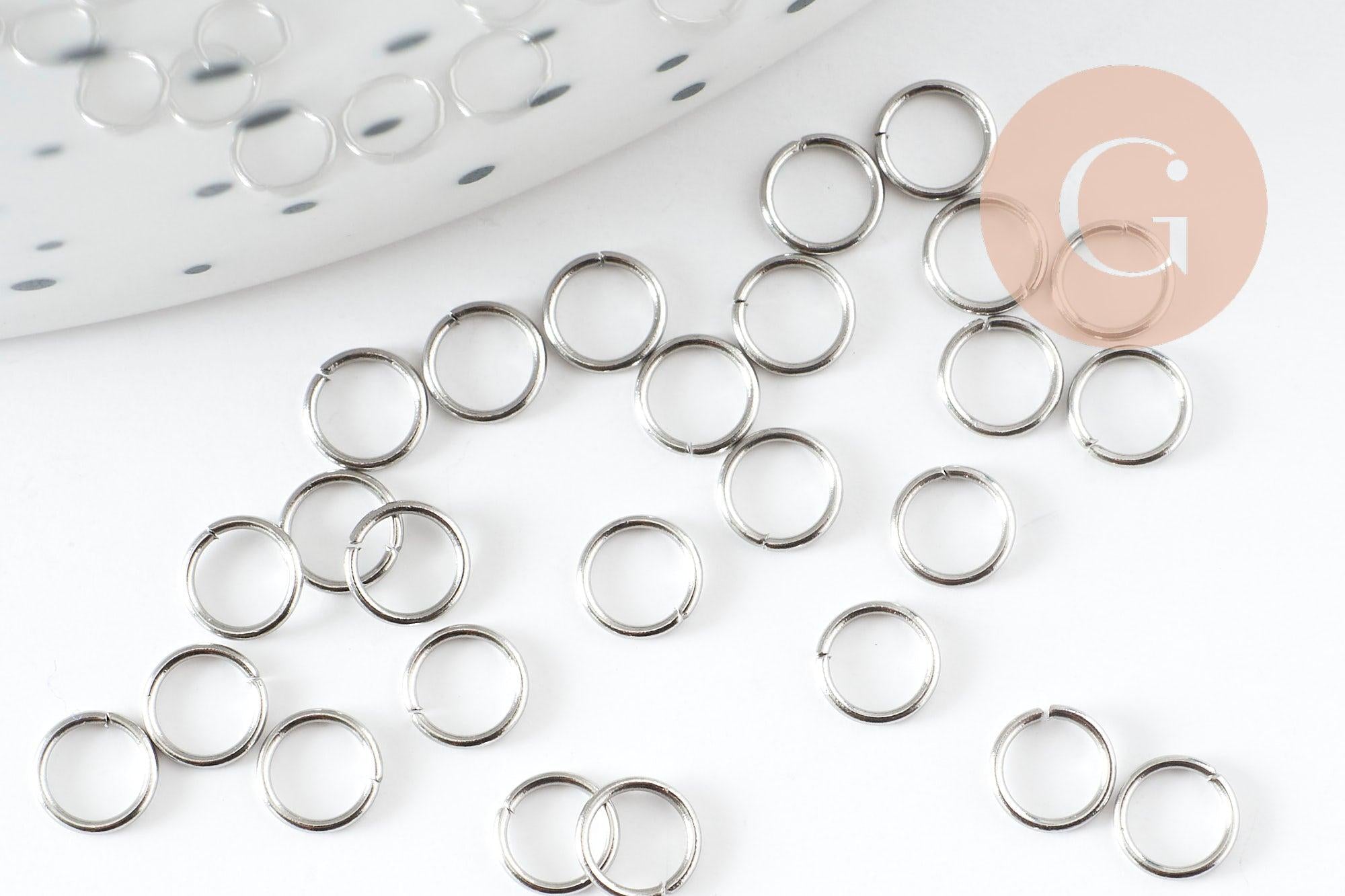 Anneaux de jonction ronds acier 304 platine inoxydable 4mm-0.4mm, x50 (G9393)