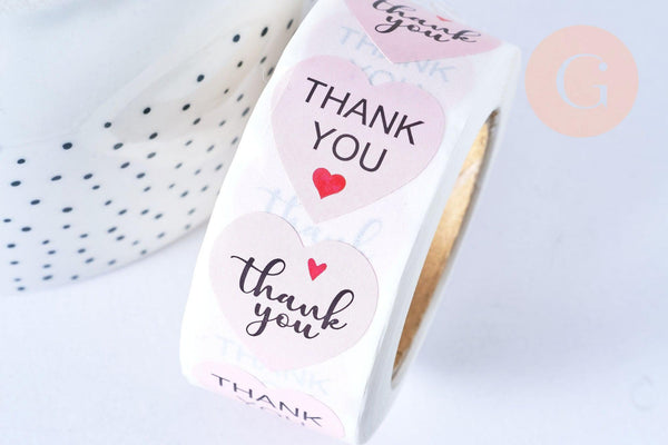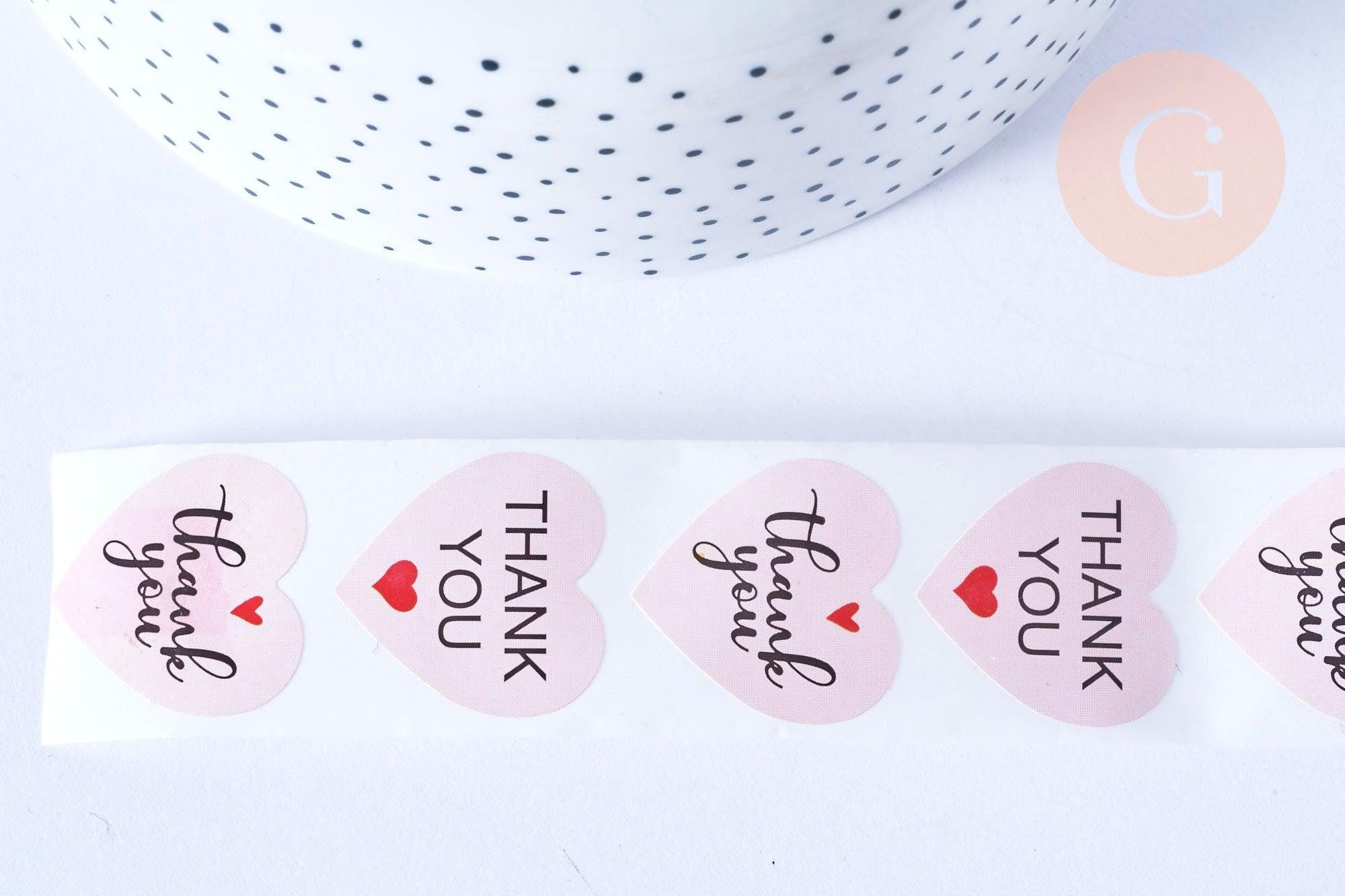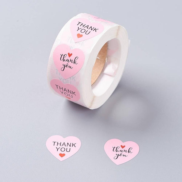 Pegatinas de agradecimiento de corazón rosa para preparar paquetes de regalo, envolver regalos, bolsas de boda, agradecimientos, rollo de 500 pegatinas