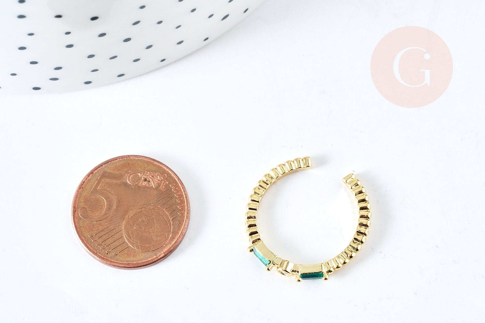 Añade un toque de elegancia y color a tu outfit con este magnífico anillo ajustable en latón bañado en oro de 18k . El anillo presenta varias circonitas de colores con diseños grabados que añaden un toque de brillo a tu dedo.