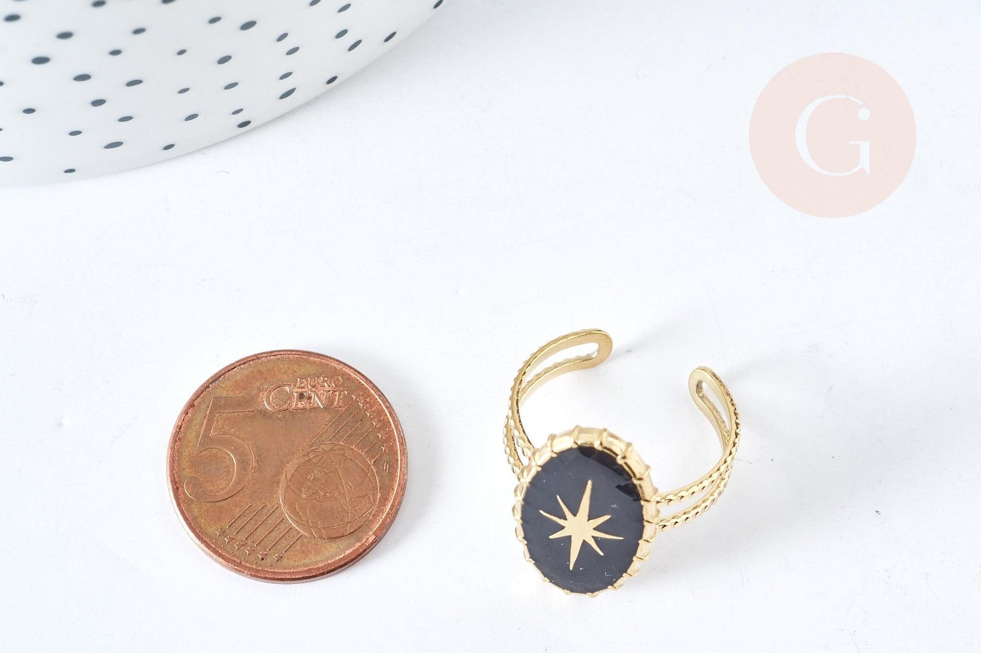 Este fino anillo de acero bañado en oro es una pieza de joyería atemporal y muy chic para mujer. Con su diseño único, está decorado con un patrón de esmalte negro con una decoración de estrella dorada , agregando un toque de sofisticación a cualquier atuendo.