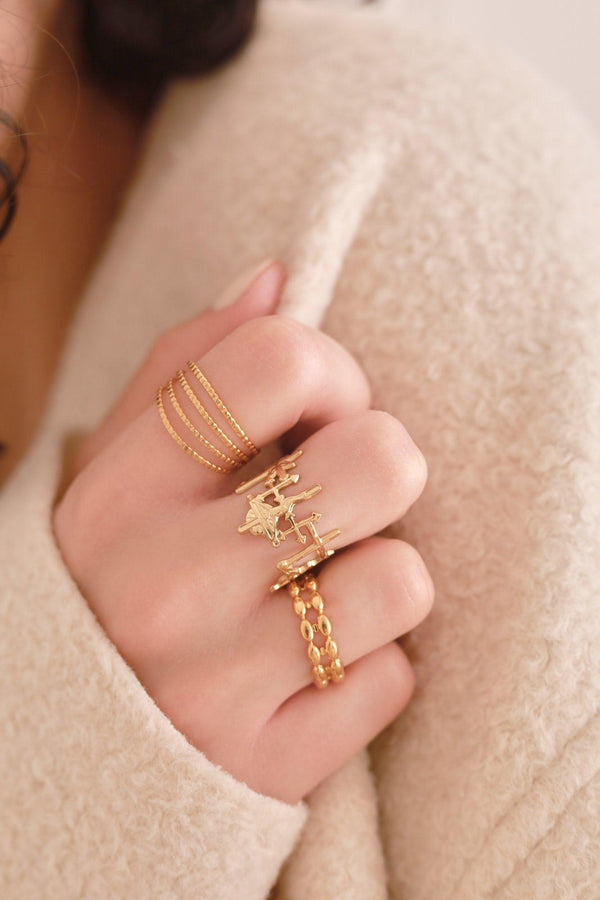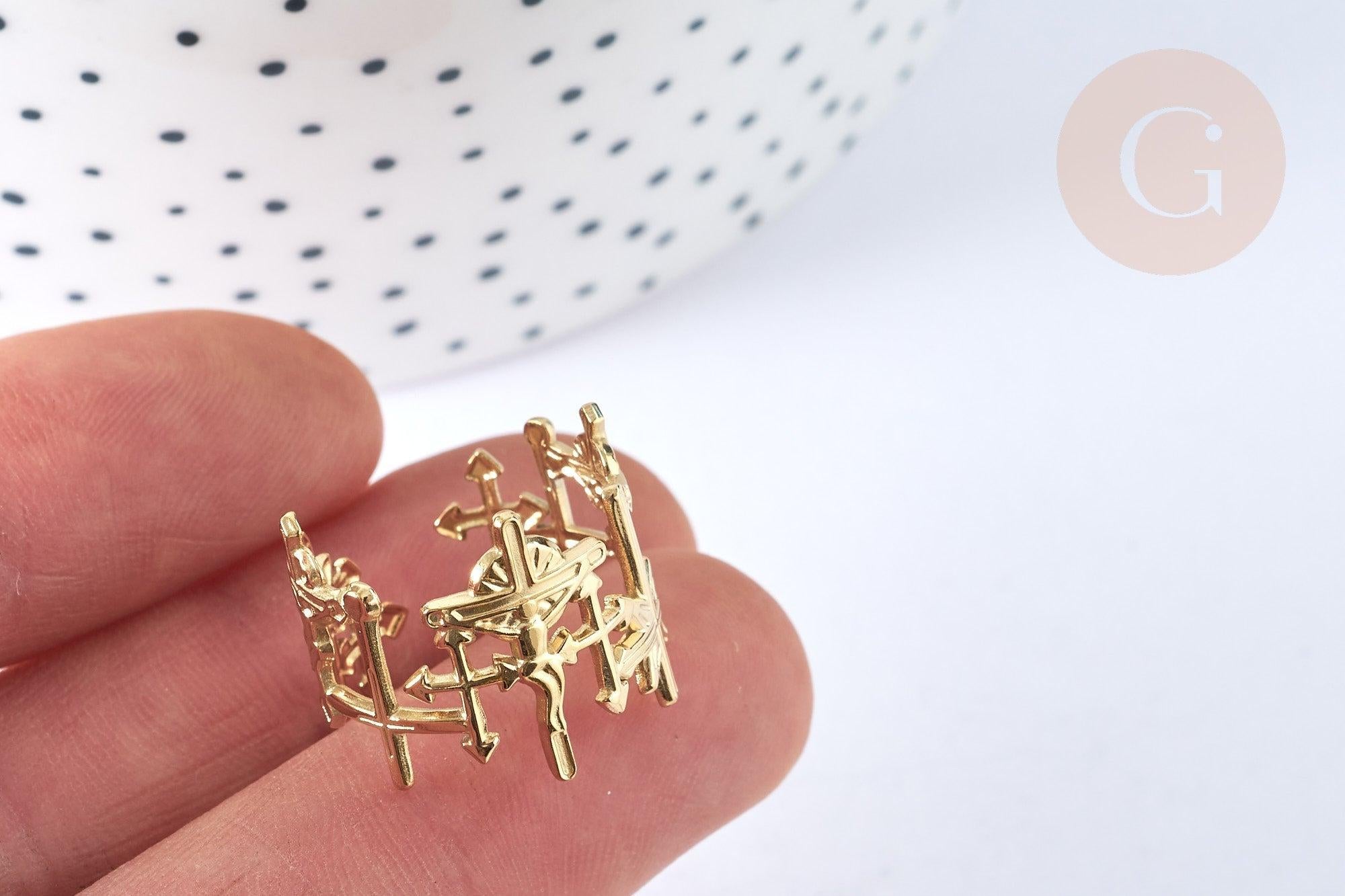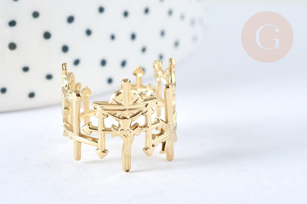 Anillo de cruz grande ajustable en acero inoxidable oro 304 , con un motivo religioso muy fino. Una joya delicada y moderna que te acompañará todos los días.