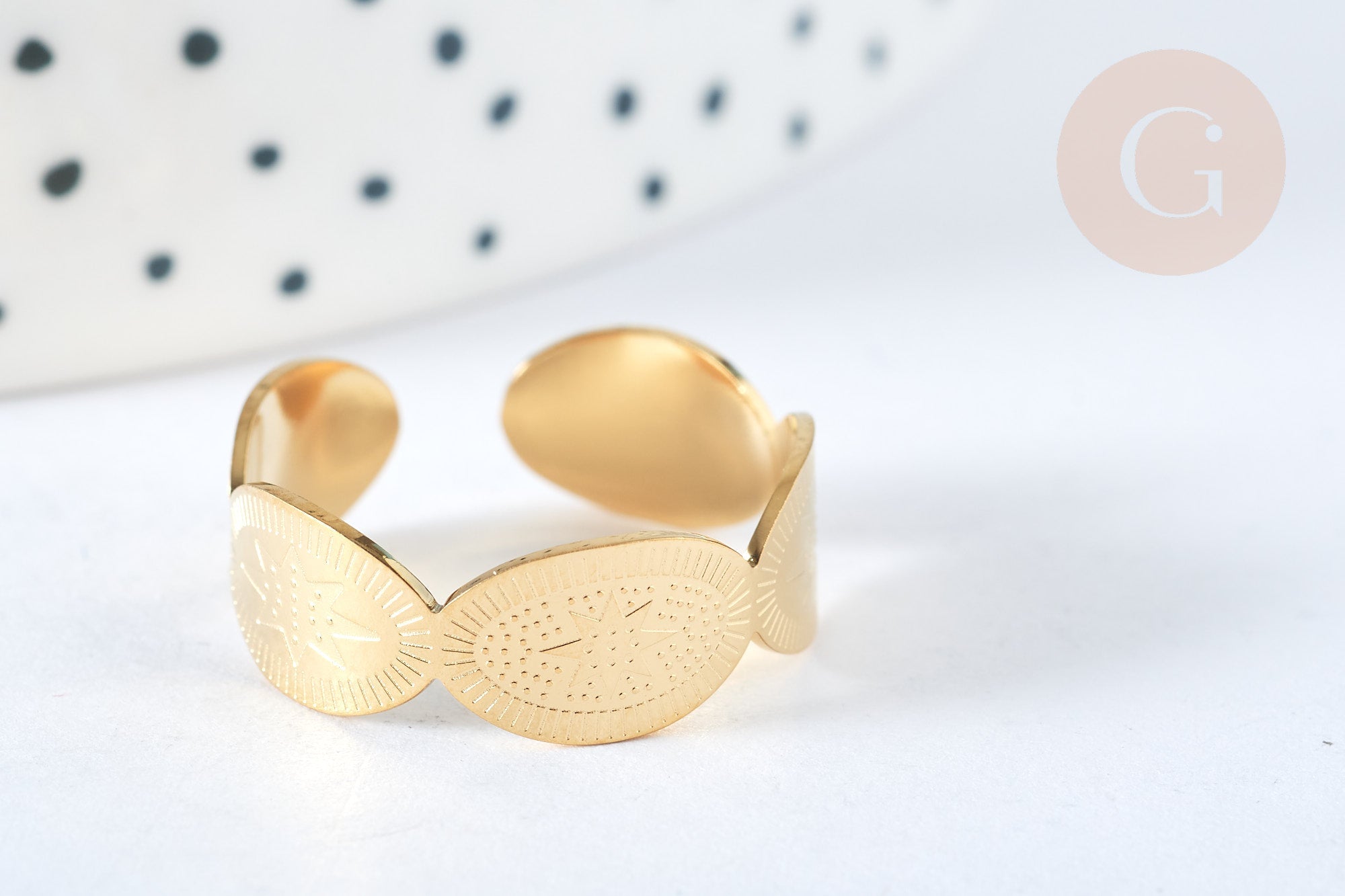Bague réglable ovale acier inoxydable doré Taille 54, x1 (G7031)