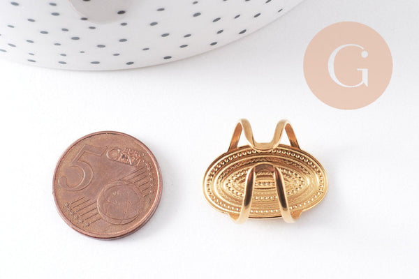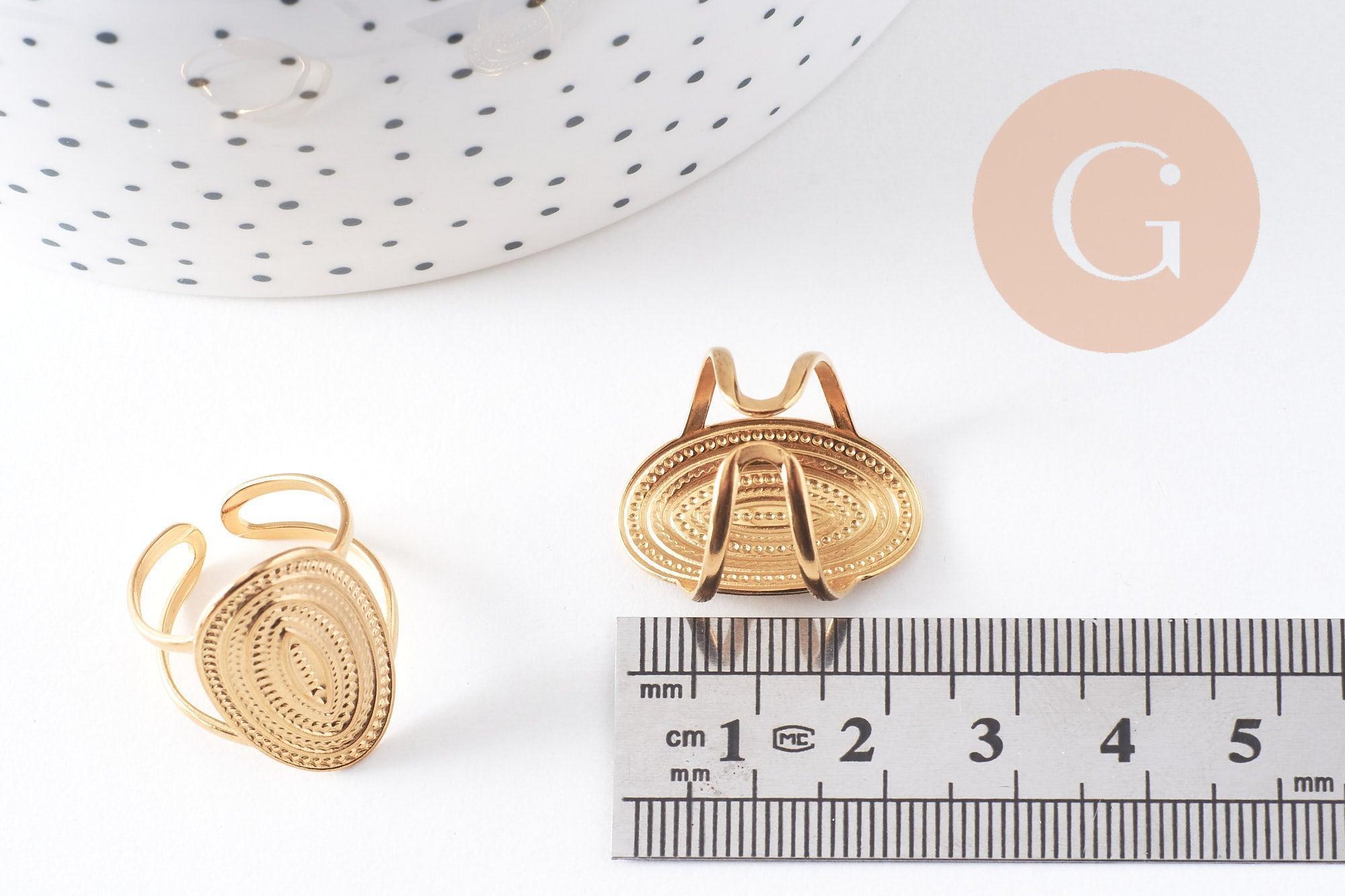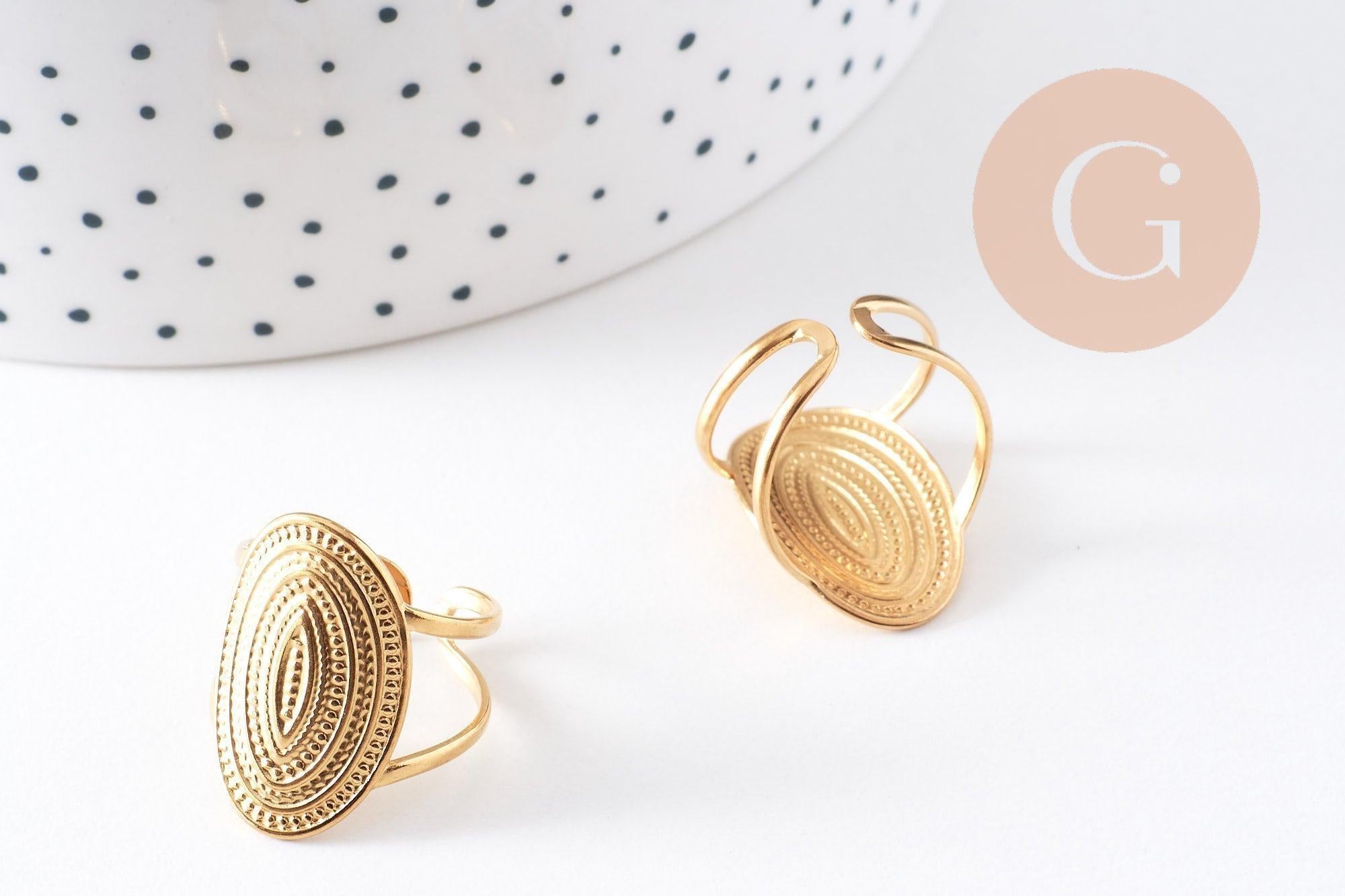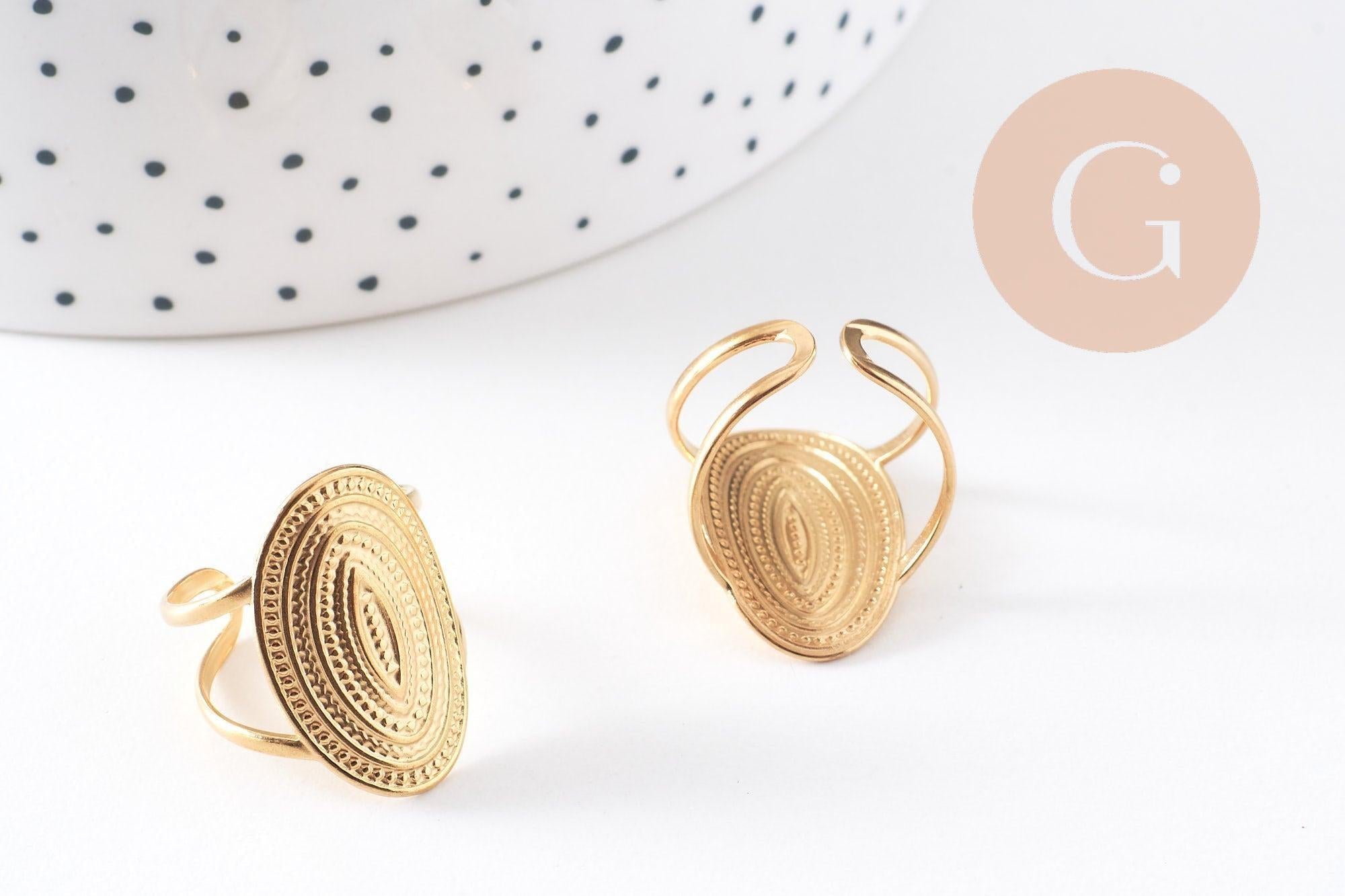 Bague réglable ovale texturée acier 304 inoxydable doré Taille 54, x1 (G10351)