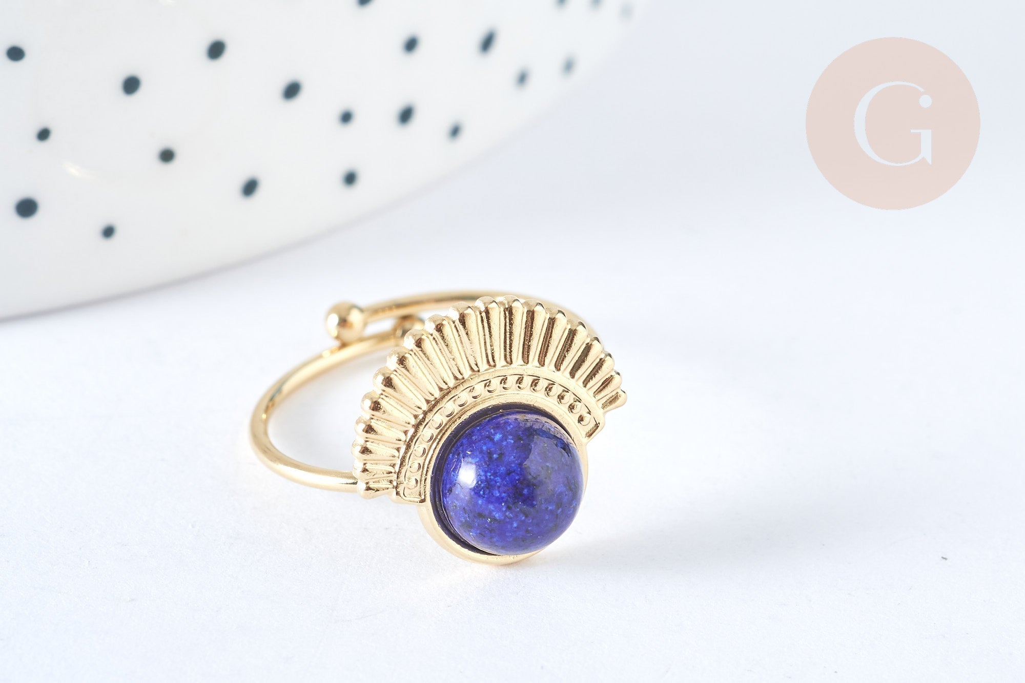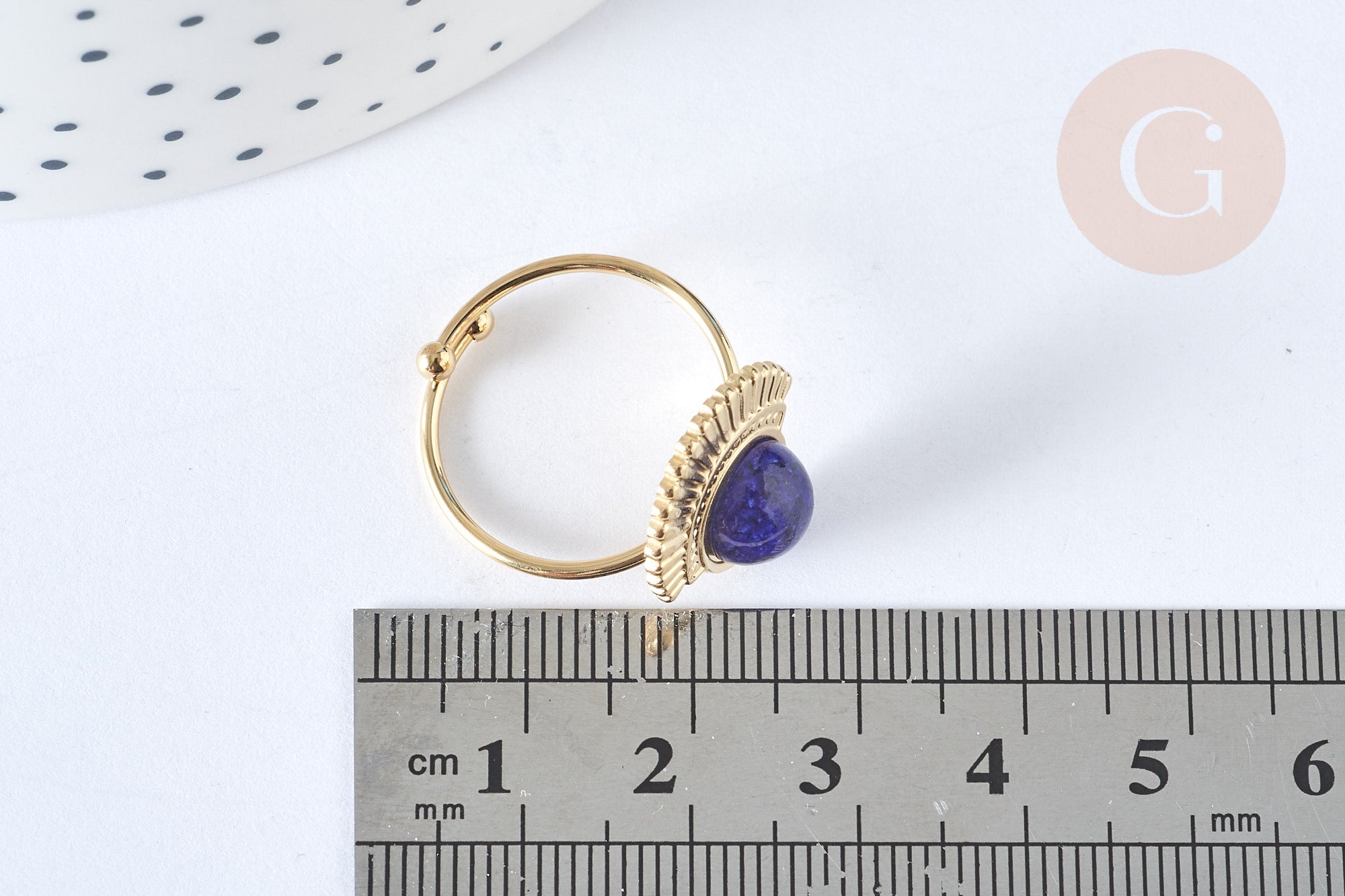 Un precioso anillo ajustable elaborado artesanalmente y decorado con una piedra de lapislázuli sintética sobre un soporte de acero inoxidable. Una pieza de joyería atemporal y muy chic que te acompañará todos los días. El acero inoxidable es un material...