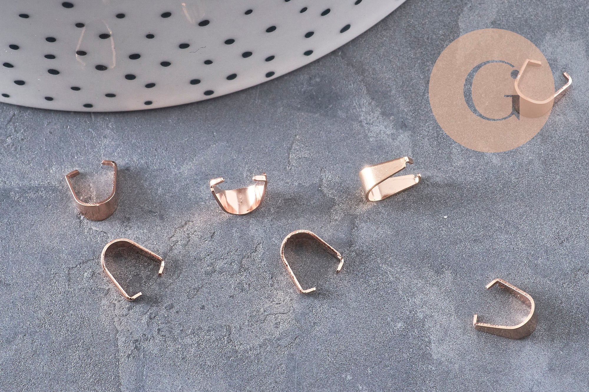 Dale un toque elegante y moderno a tus creaciones con estos enganches de acero inoxidable IP 304 en oro rosa , ideales para fijar rápidamente un colgante a una cadena o cordón. Su suave y luminoso acabado en oro rosa aporta un toque contemporáneo a tus joyas. Fáciles de colocar gracias a su sistema de cierre, son perfectos para una instalación rápida, limpia y duradera.