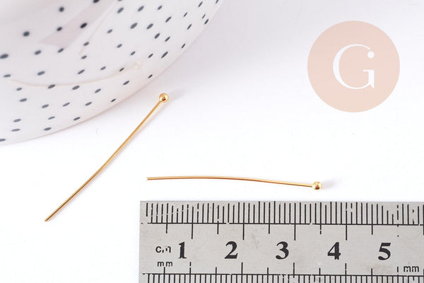Juego de 20 clavos de varilla con cabeza esférica de acero inoxidable 304 bañados en oro IP 30 mm