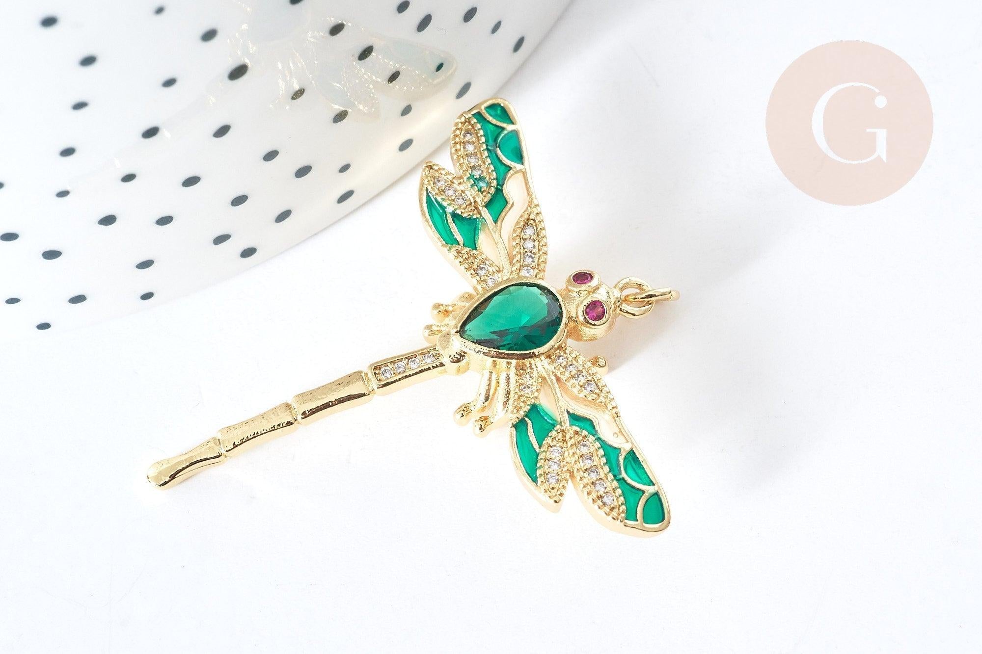 Déjate seducir por este hermoso colgante de insecto que representa una libélula . Éste presenta circonitas verdes y blancas.